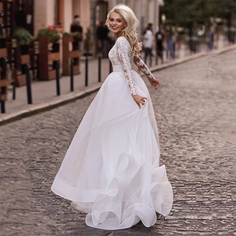 Сдержанное свадебное платье с длинным рукавом, шифоновые кружевные ...
