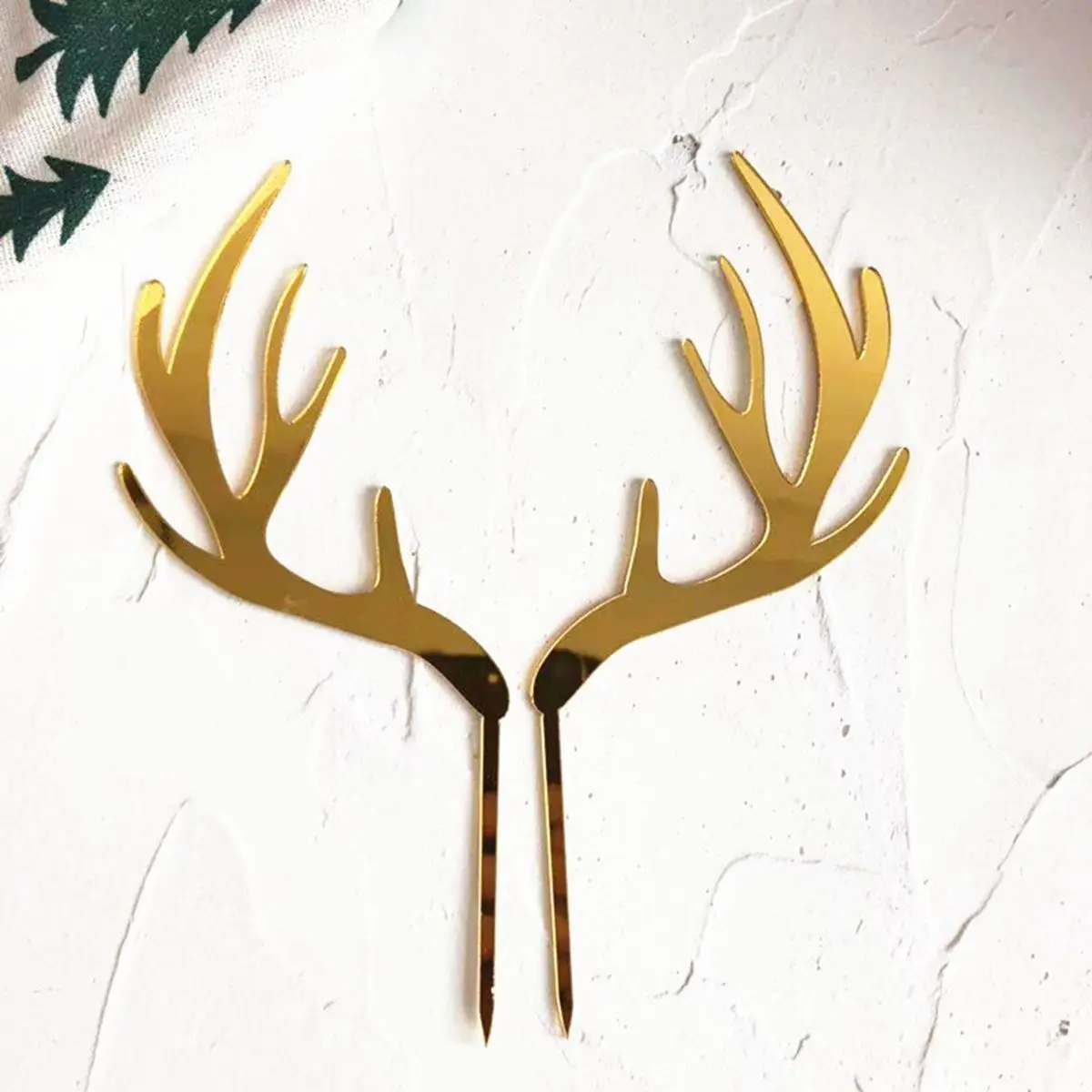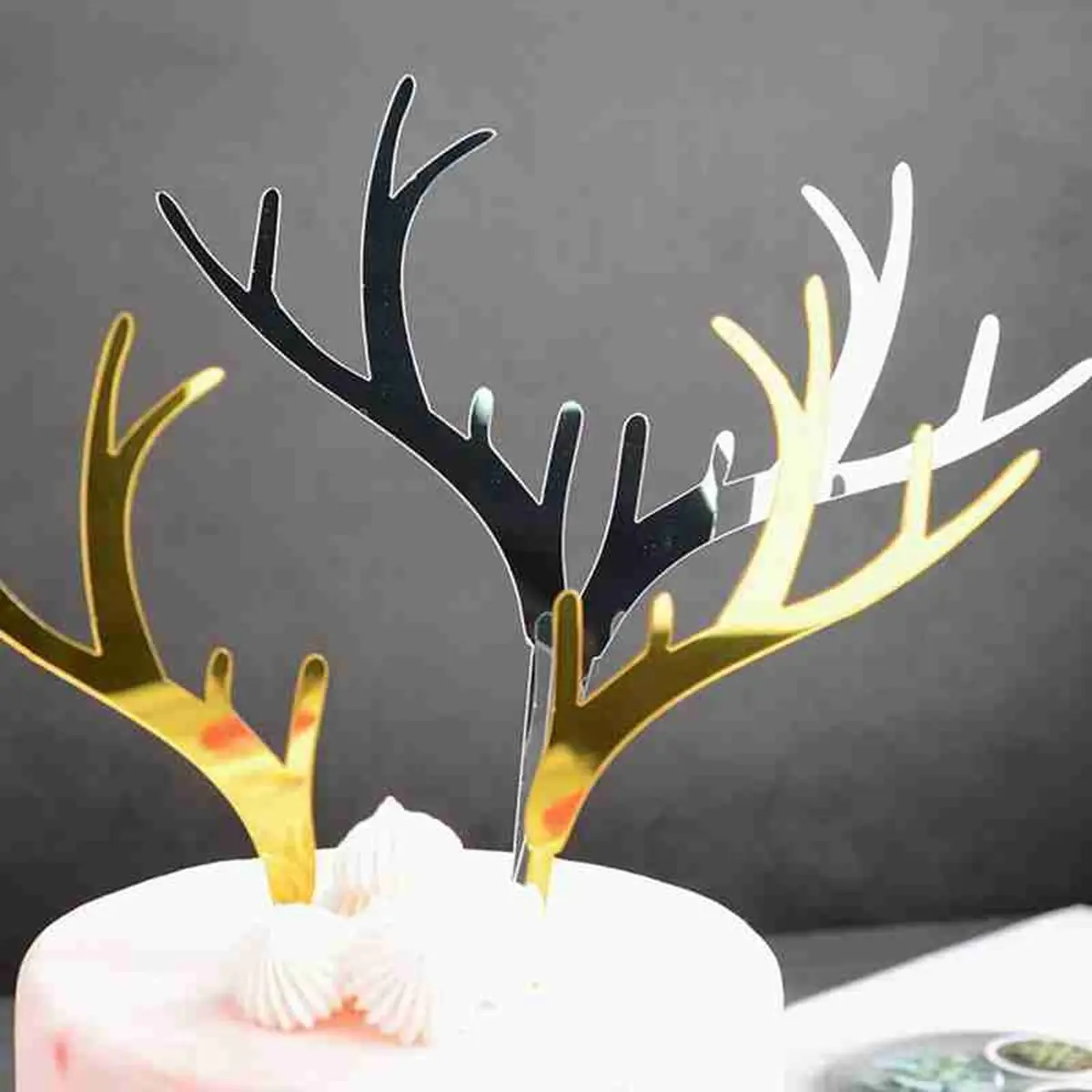 Олень для свадьбы, дня рождения, акрил, Рождество, золотой, серебряный олень, рог, Рождественское украшение, торт, Топпер, товары Вечерние
