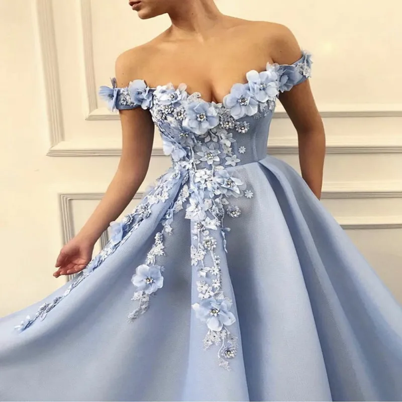 Женское вечернее платье с открытыми плечами Vkiss Store, элегантное Тюлевое длинное платье с аппликацией светло-голубого цвета для официальной вечеринки и выпускного вечера