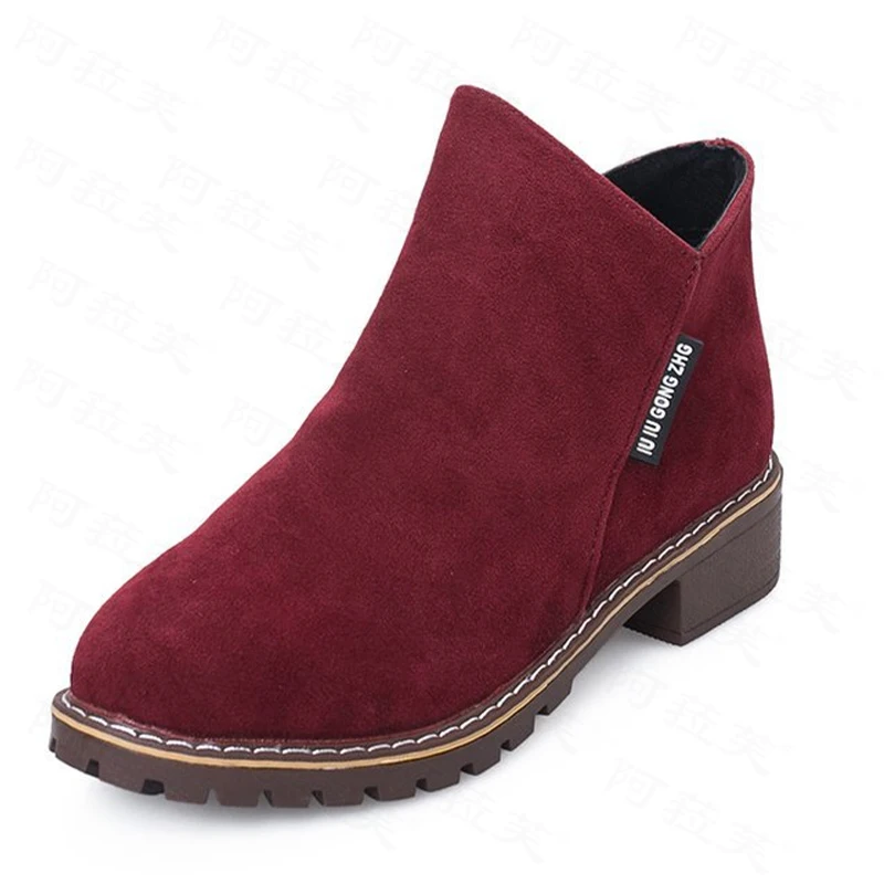 Женские замшевые кожаные ботильоны, ботинки на массивном каблуке с ...