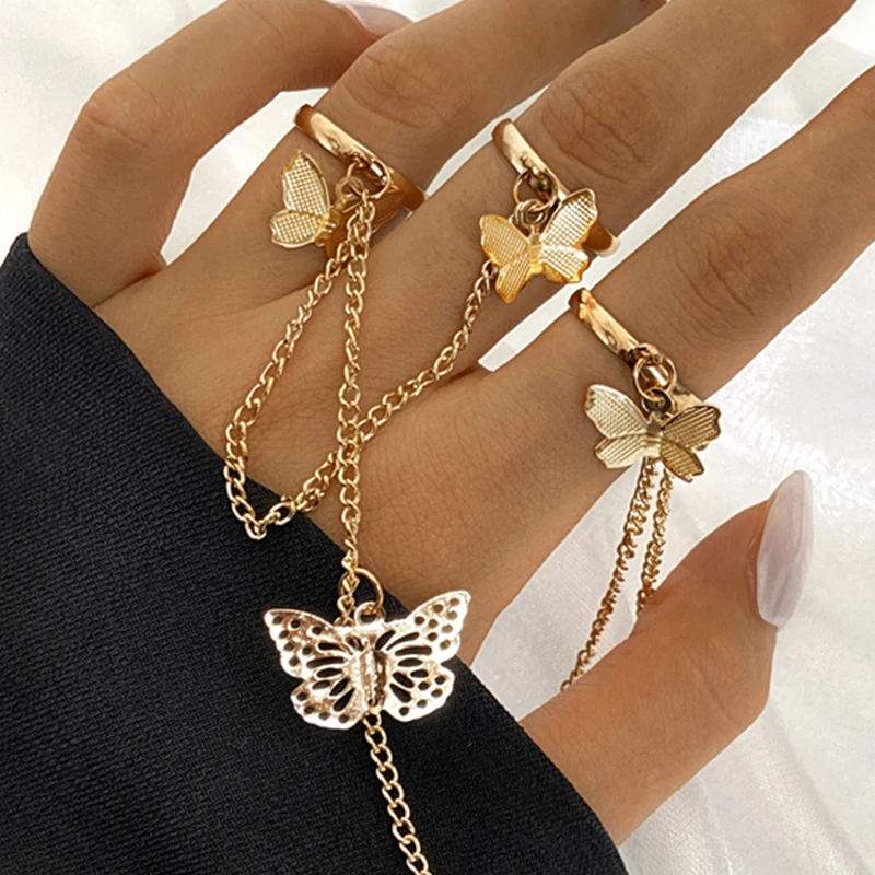 Женский комплект колец с бабочкой, длинное регулируемое кольцо из с...