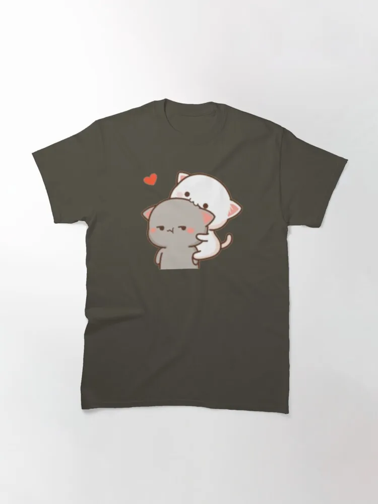 Топы, футболка, Женская Классическая футболка Mochi Peach Cat