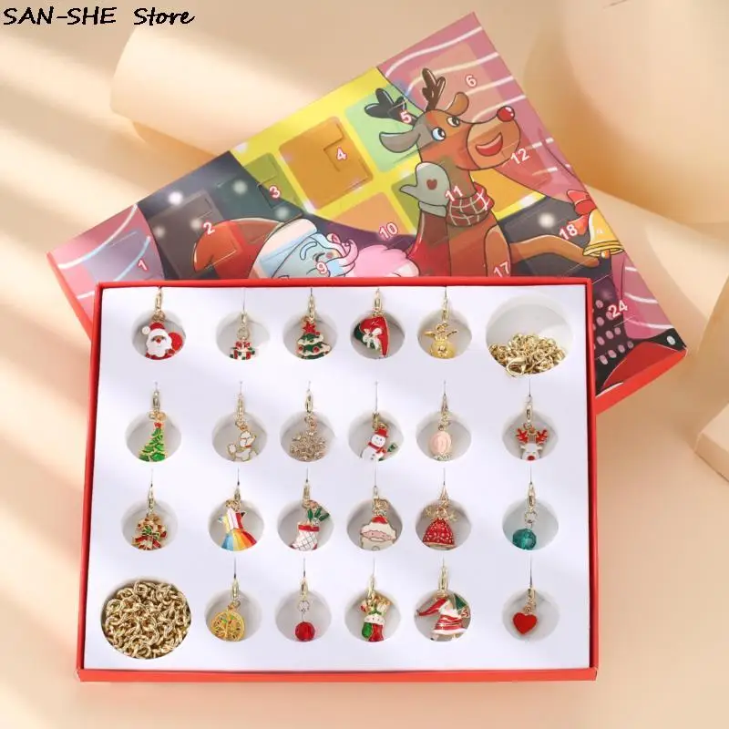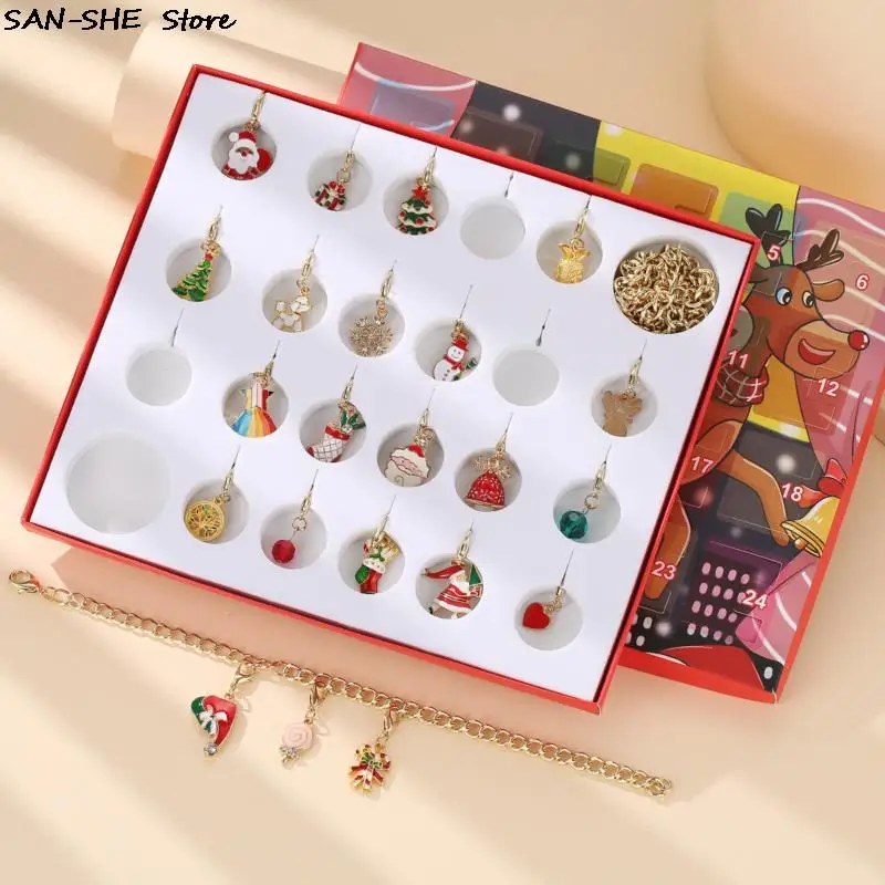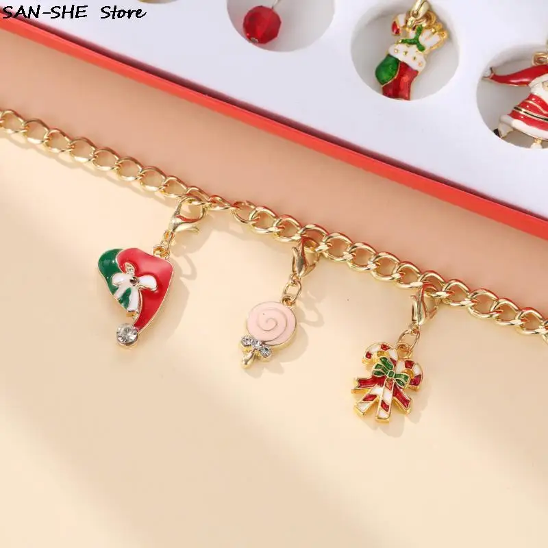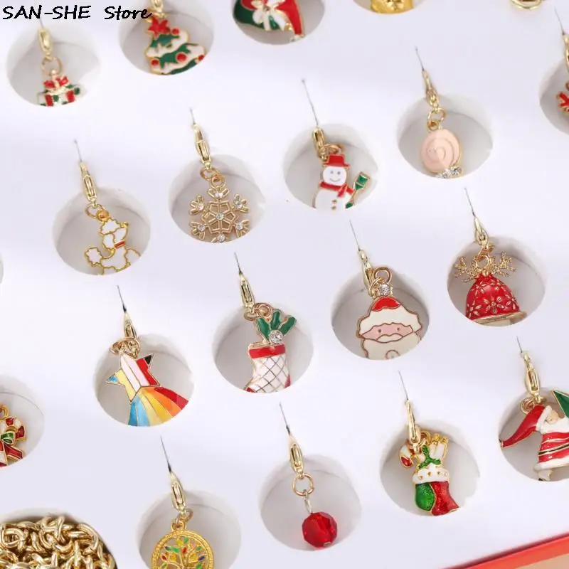 Рождественский календарь с навесом, Рождественский тематический Шарм сделай сам, ювелирные изделия, браслет, ожерелье, Набор для изготовления для девочек, рождественский подарок