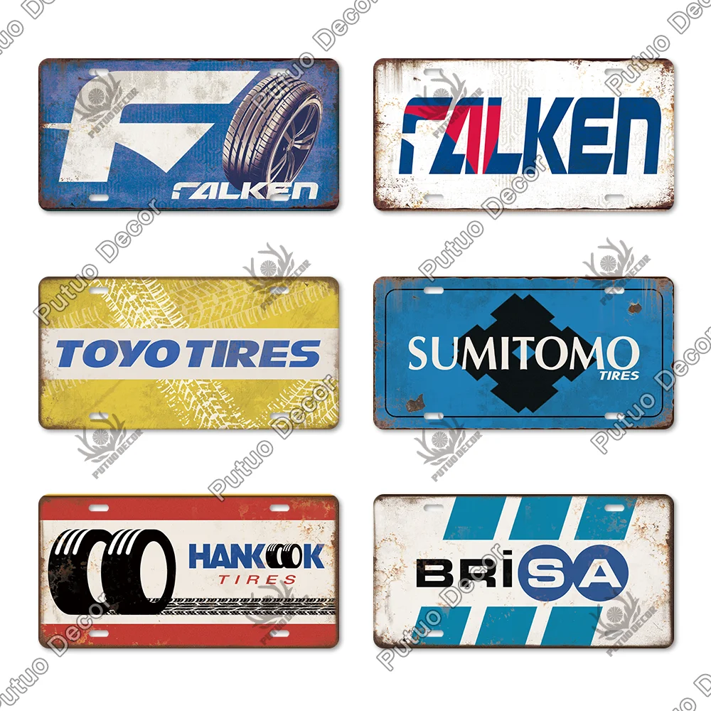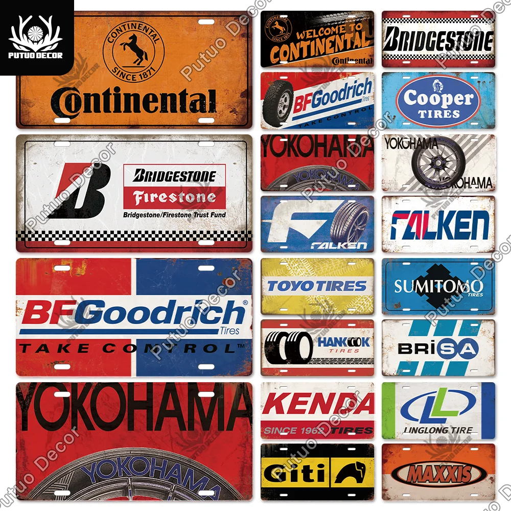 Винтажный металлический знак Putuo Decor Tire Brand, номерной знак, металлический винтажный Настенный декор для гаража, автомобиля, мастерской, клуба, домашнего декора