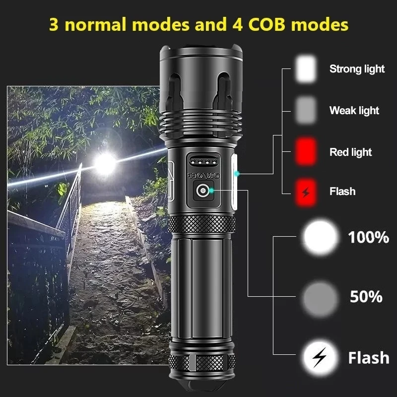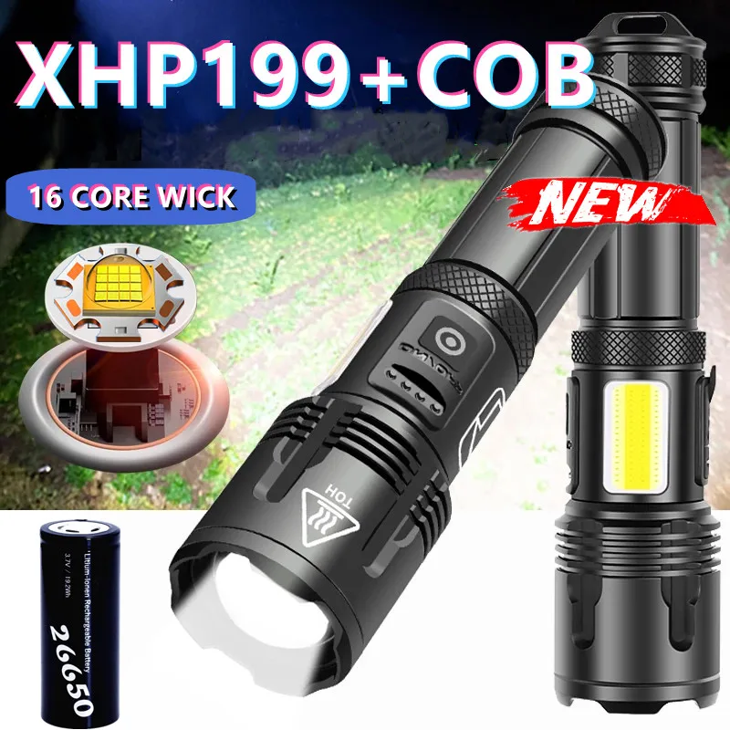 2022 XHP199 16-ядерный USB Перезаряжаемый COB рабочий светодиодный фонарик с зумом самый мощный светодиодный тактический светильник онарик с батареей 26650