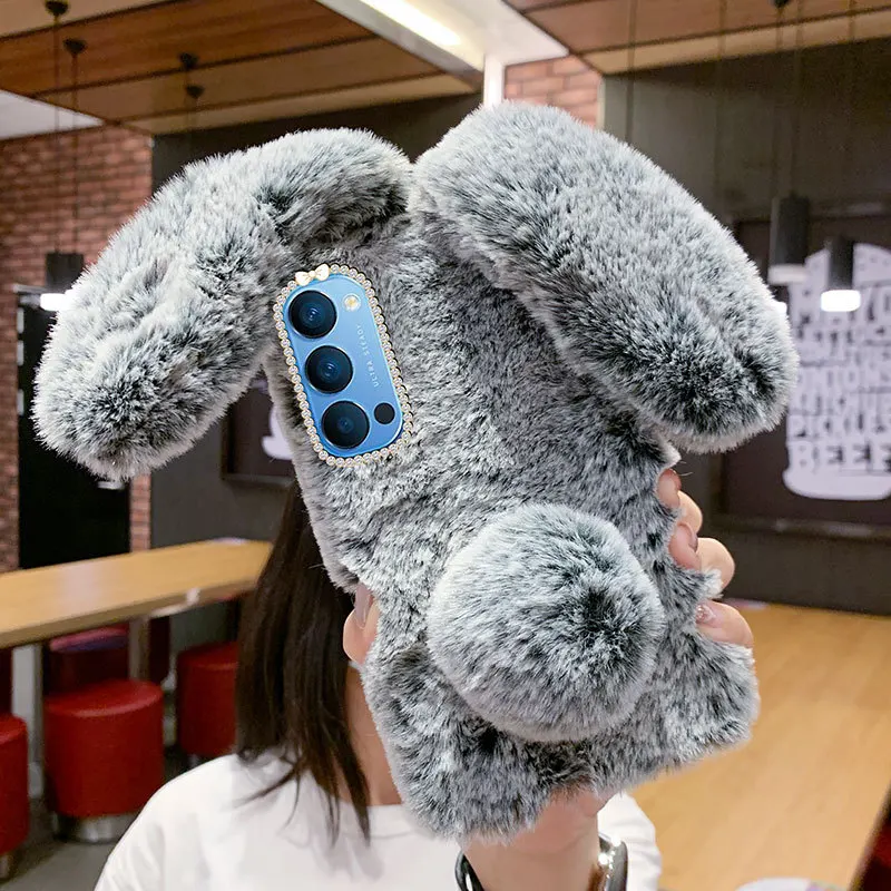 FeaturesRabbit Ears Plush Warm Phone Case Fluffy Fur silicone cover capa etui