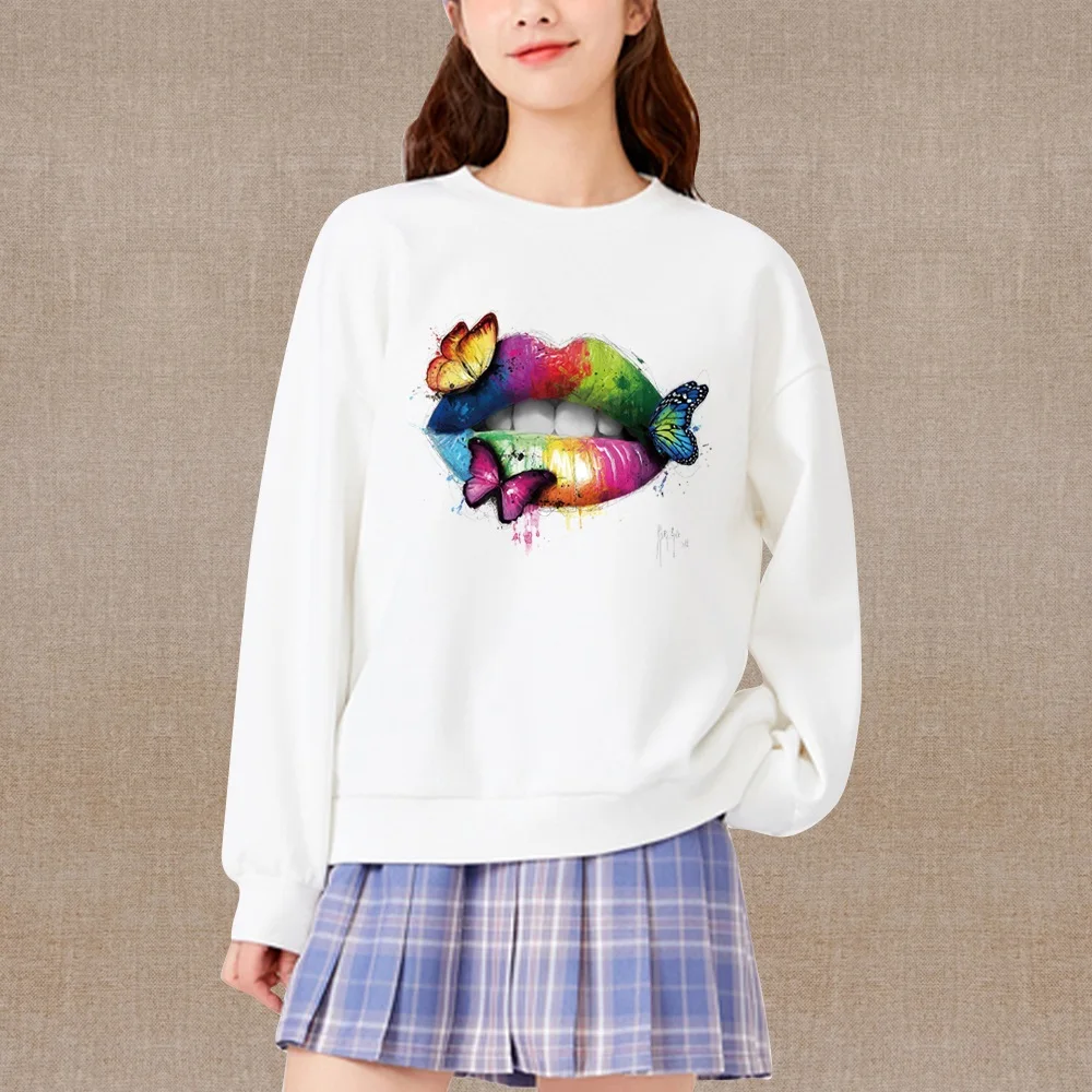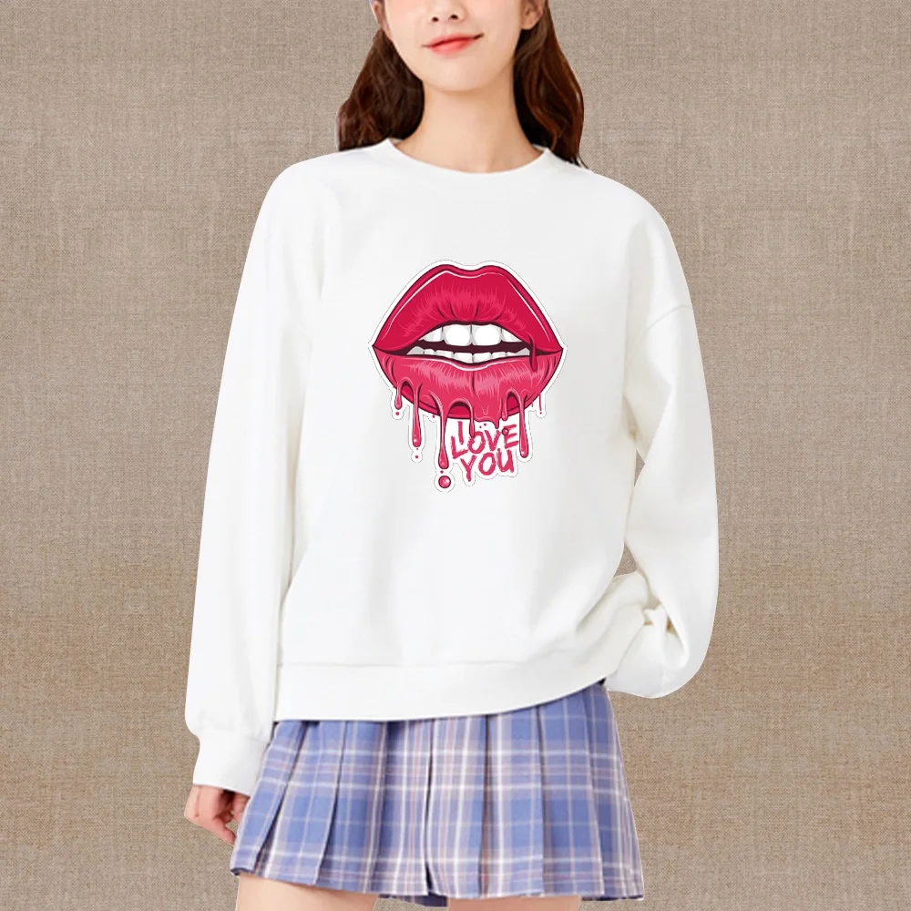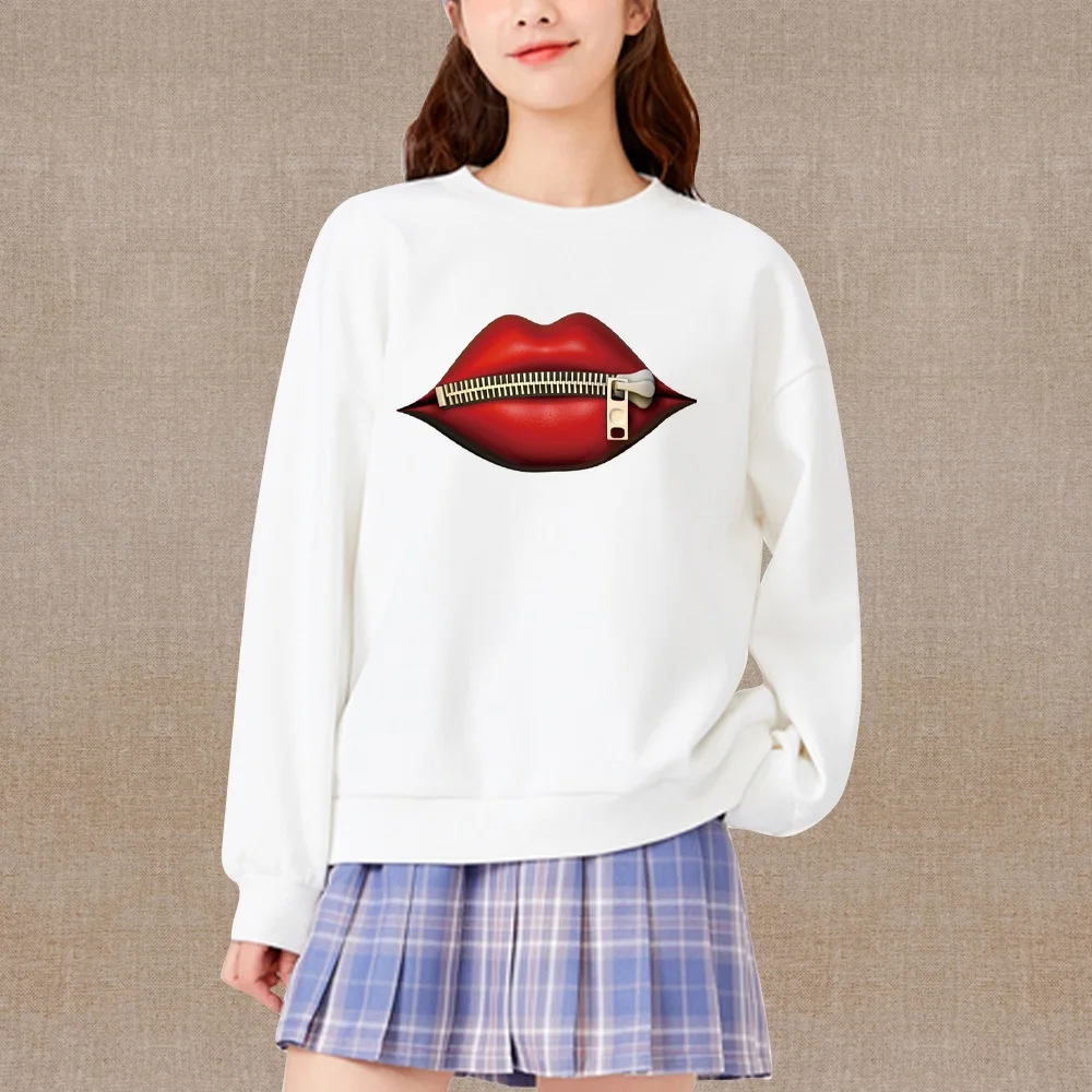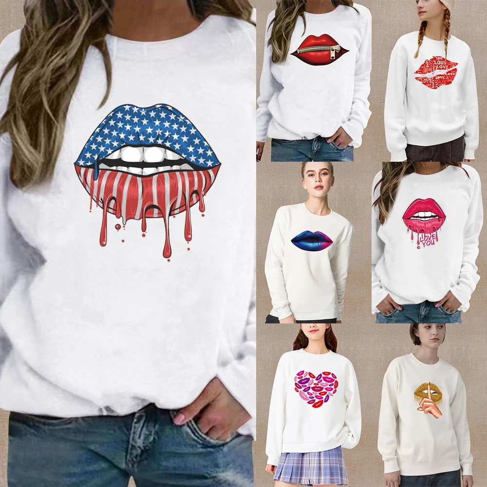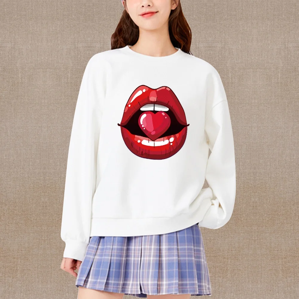 Женская одежда, свитшот с длинным рукавом, пуловер, Повседневная облегающая серия с принтом губ и О-образным вырезом, теплая Осенняя мягкая толстовка