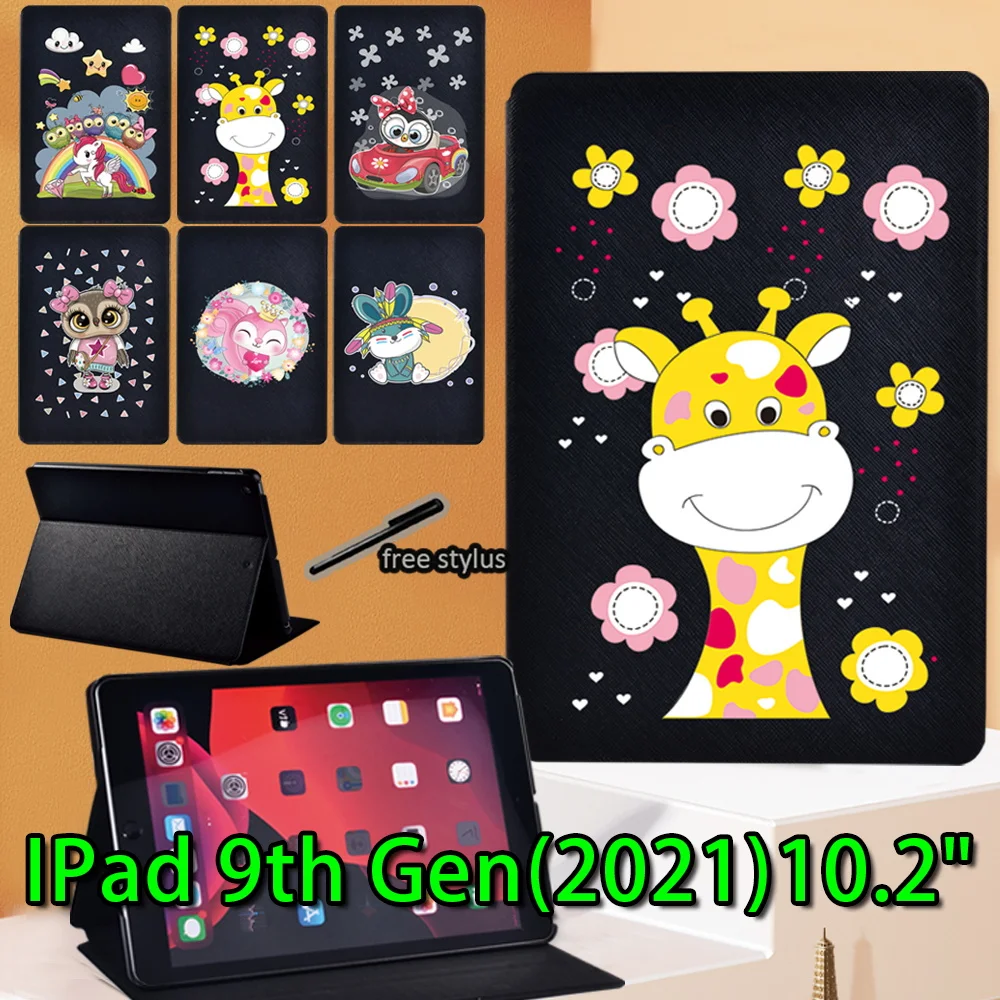 Чехол для планшета IPad 10,2 дюйма 9 поколения 2021 симпатичный чехол из искусственной кожи с откидной крышкой и подставкой с рисунком EVA