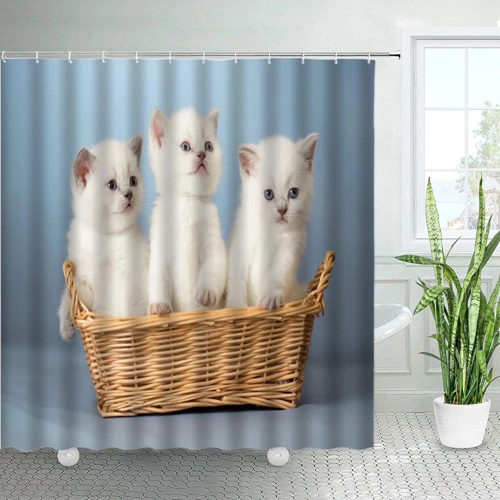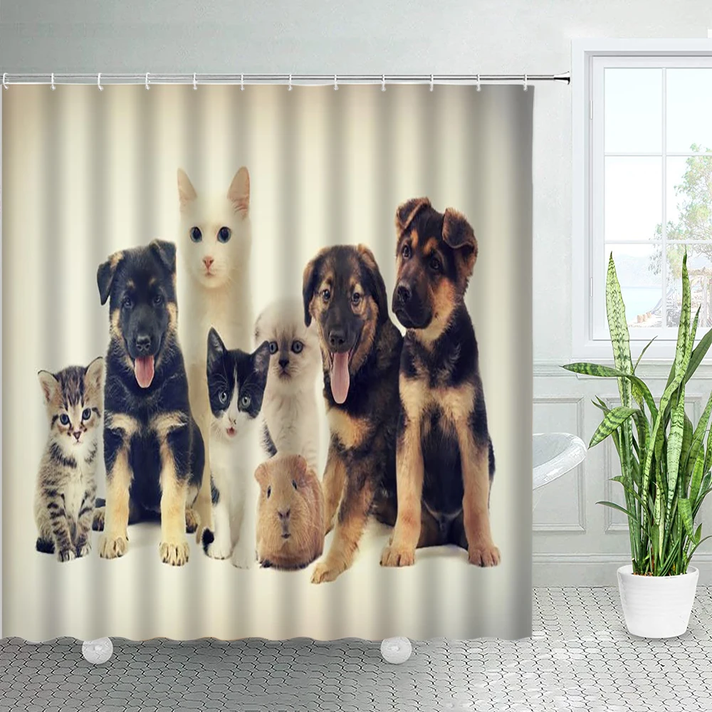 Забавные кошки, собаки, душевая комната, милые животные, домашние животные, коричневый современный декор для ванной комнаты, шторы для ванны из полиэстера с крючками