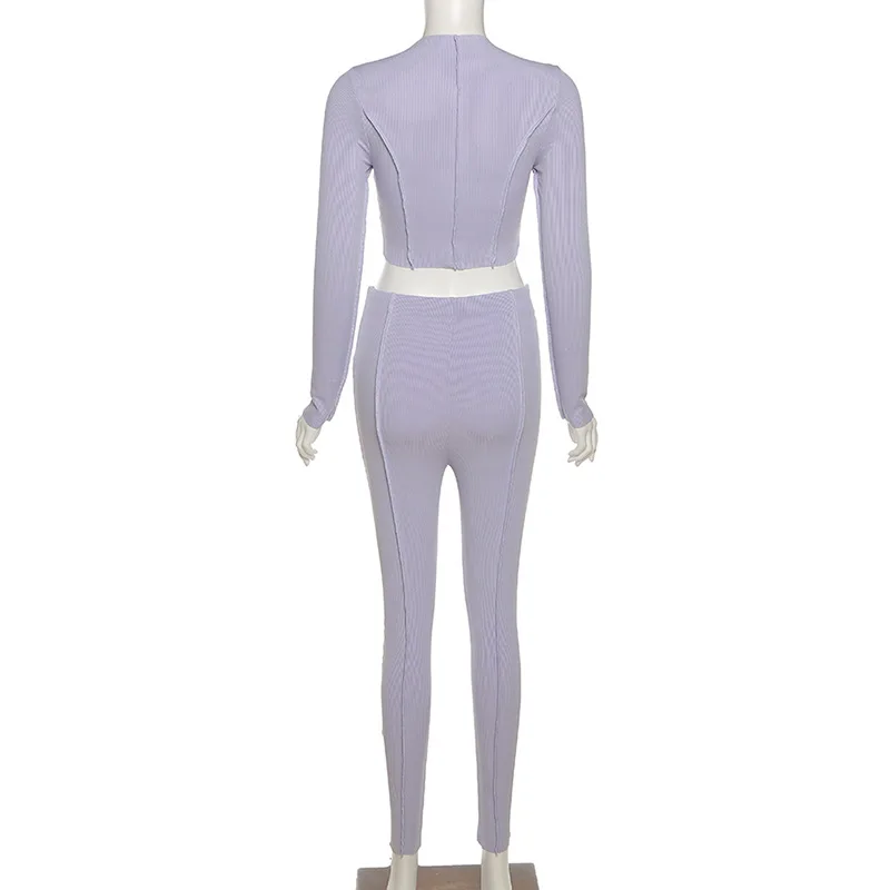 Осенне-зимняя новая однотонная женская одежда модный дизайн чувствительный завышенная талия тонкий спортивный костюм для отдыха пикантные брюки комплект из двух предметов