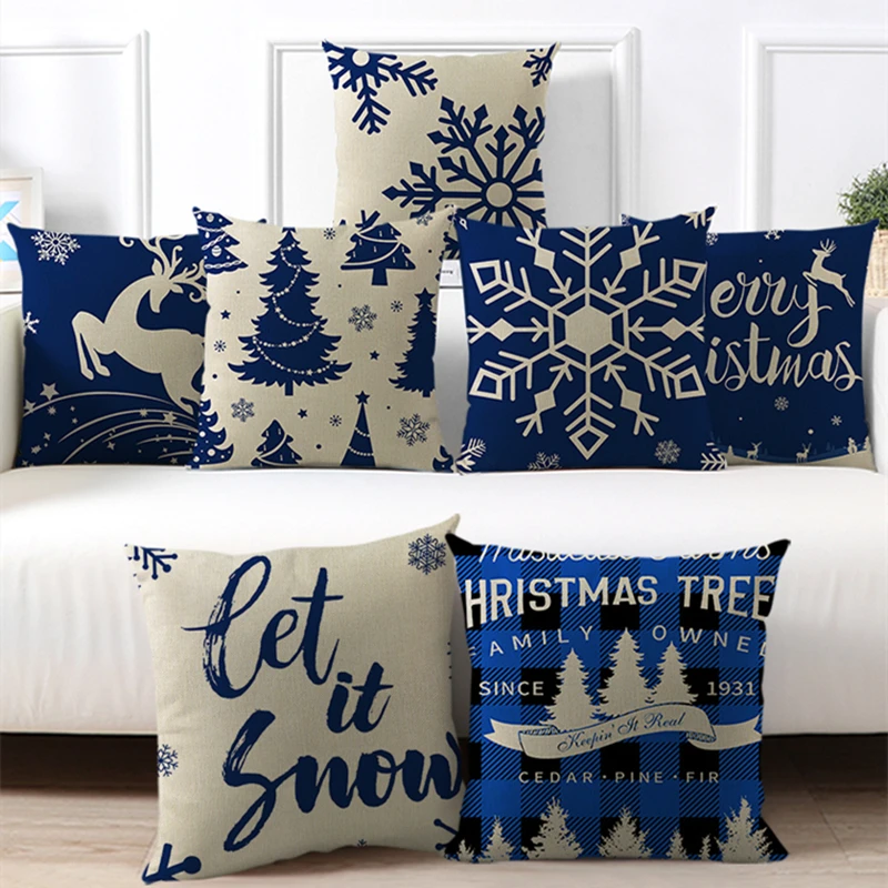 Рождественская елка, искусственная льняная наволочка, 45x45 см, син...