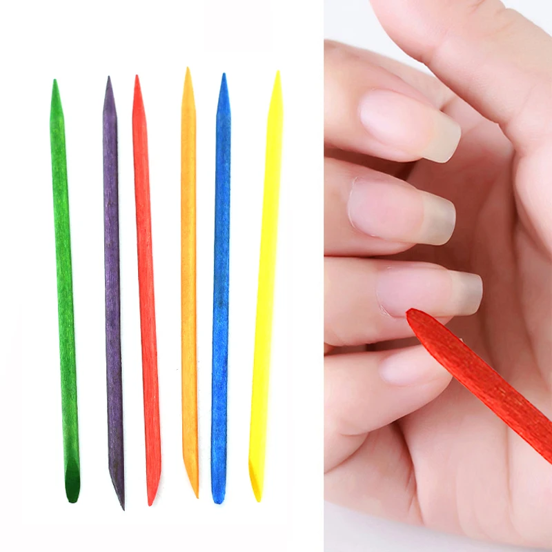 Оптовая продажа, 500 шт, цветные деревянные палочки для ногтей, кутикулы, толкатель для удаления гель-лака, маникюрный дизайн, профессиональные аксессуары для ногтей