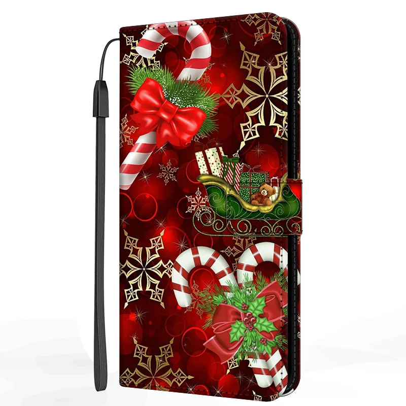 Рождественский кожаный чехол-книжка для Xiaomi Redmi 9 9T 9A 9AT 9C...