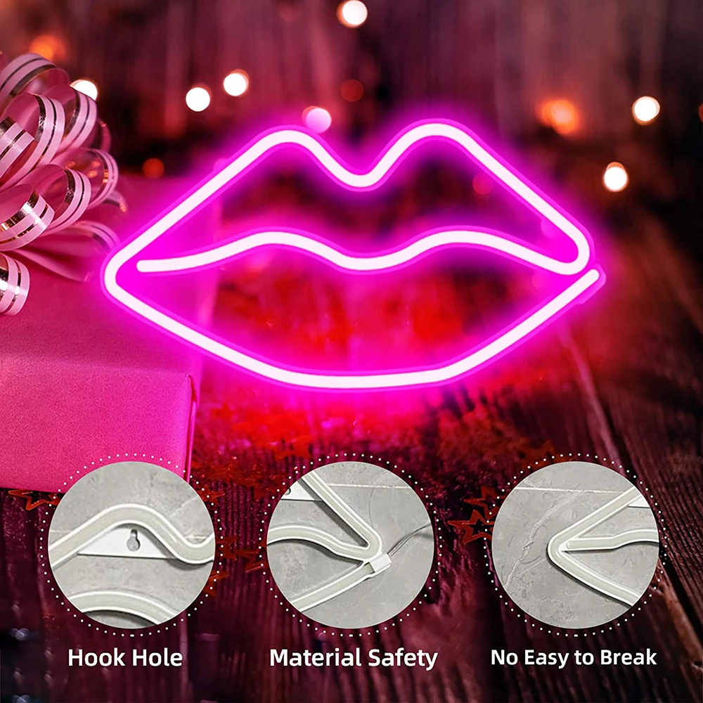 Неоновая Светодиодная лампа в виде губ, с двойным питанием от USB, настольная лампа для украшения дома для вечеринки, украшение для стен, женские и детские светильники, подарки