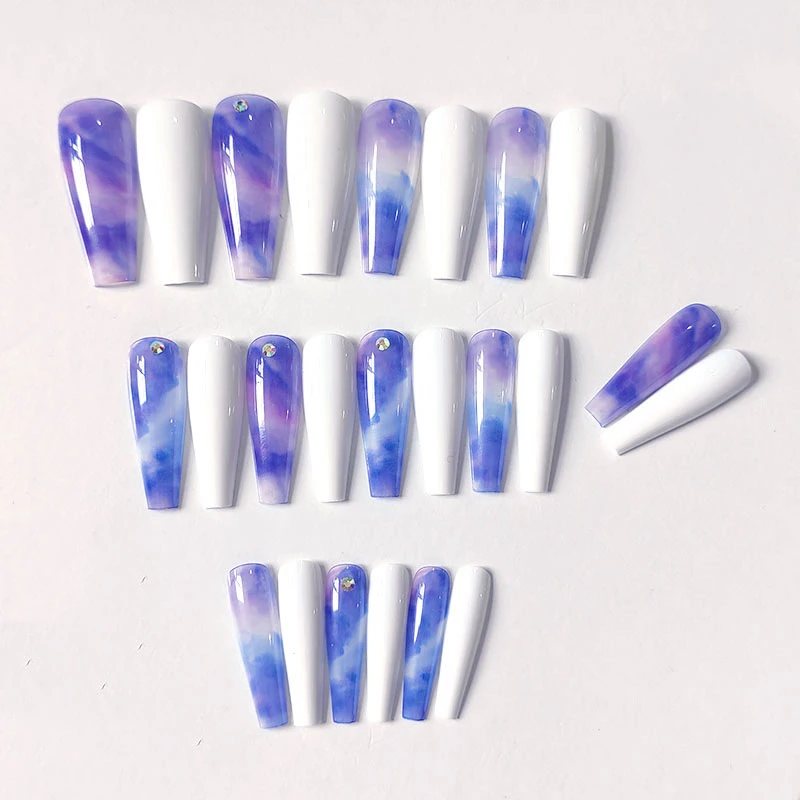 24 шт.кор. градиентные Синие Длинные накладные ногти Стразы Балерина гроб накладные ногти полное покрытие акриловые накладные ногти