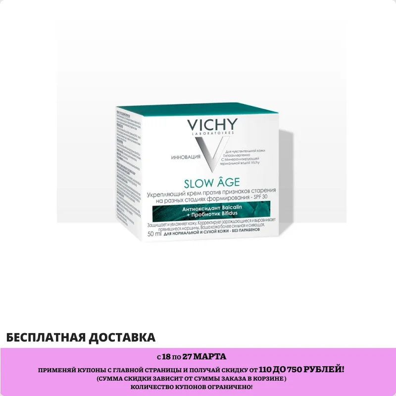 VICHY Укрепляющий крем, корректирующий первые признаки старения, для нормальной и сухой кожи SLOW GE SPF30, 50мл