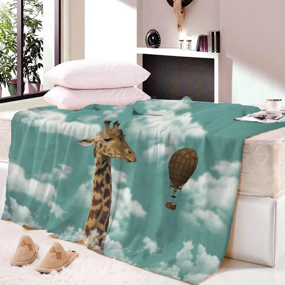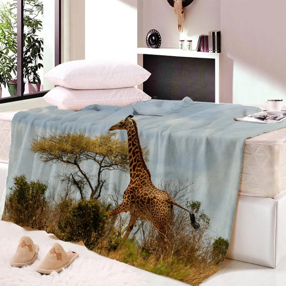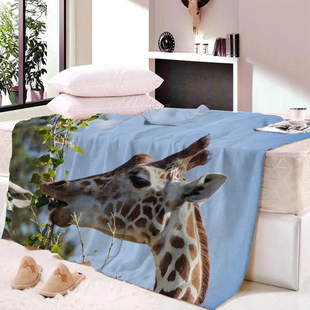 Флисовое одеяло с 3D-принтом жирафа, покрывало для дивана, дорожное покрывало для молодых детей, бархатное плюшевое покрывало для дома и офиса