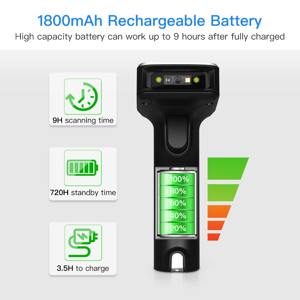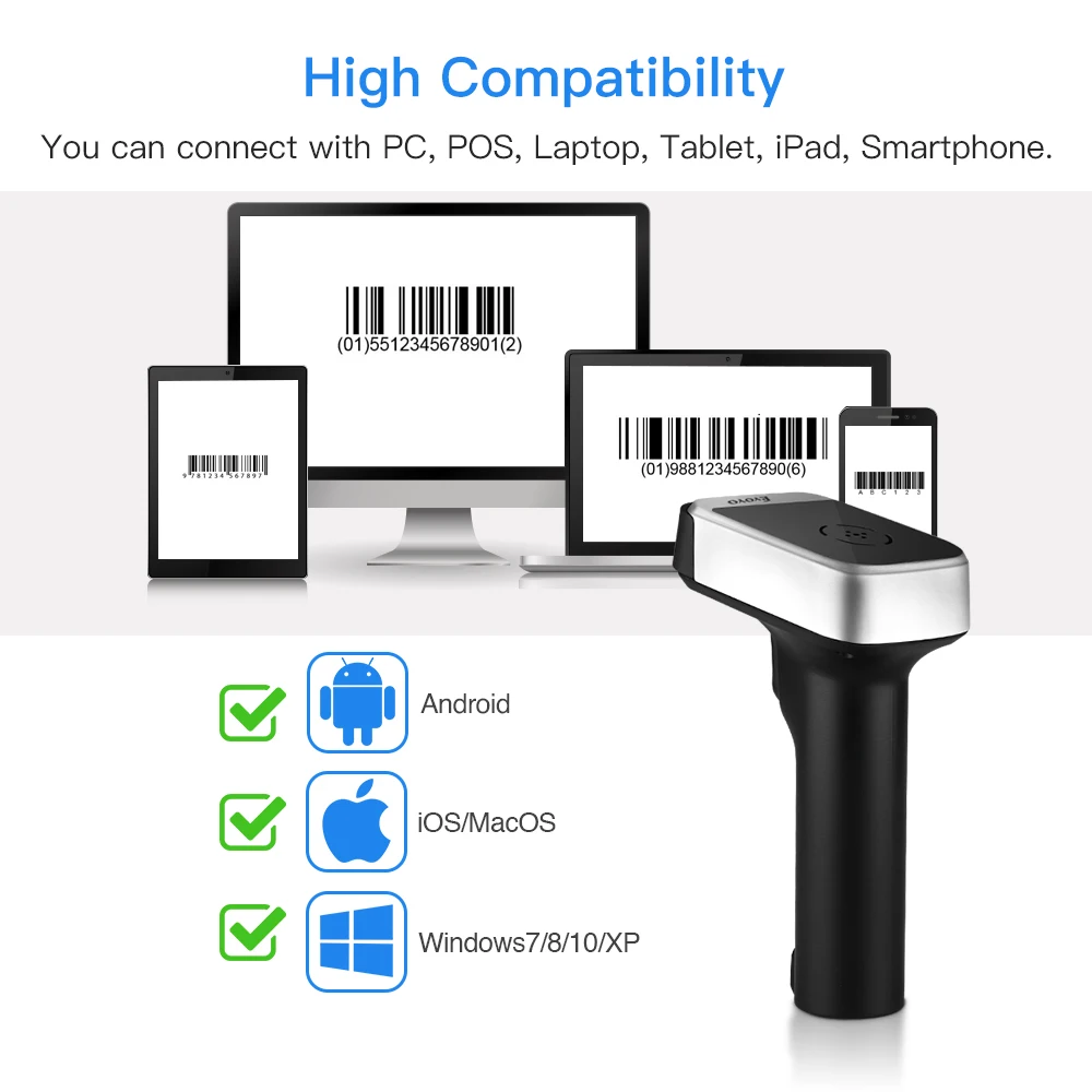 Eyoyo Новый стильный CCD сканер штрих-кода, это 3-в-1 взаимный обмен данными между компьютером и периферийными устройствами проводной и BT 4,1 & 2,4 ггц. Беспроводной сканер штрих-кода, поддержка проводного и Беспроводной с двойным режимом переключения. Он имеет большое расстояние передачи, 9 часов длительного использования и 16 Мб большой емкости хранения. В других руках, Поддержка 1D различных штрих-кодов, и поддержка CCD сканирует экран, вы можете использовать его более удобно.