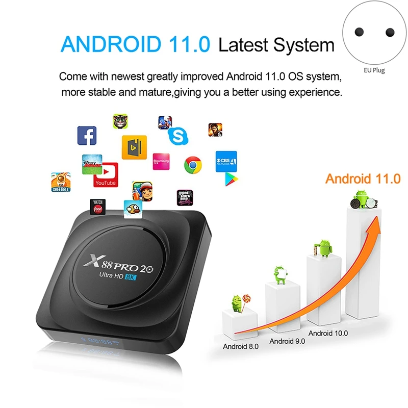 ТВ-приставка X88 PRO 20, Android 11 ROM, Rockchip RK3566, 8K, медиаплеер для Google Youtube, 1000 м