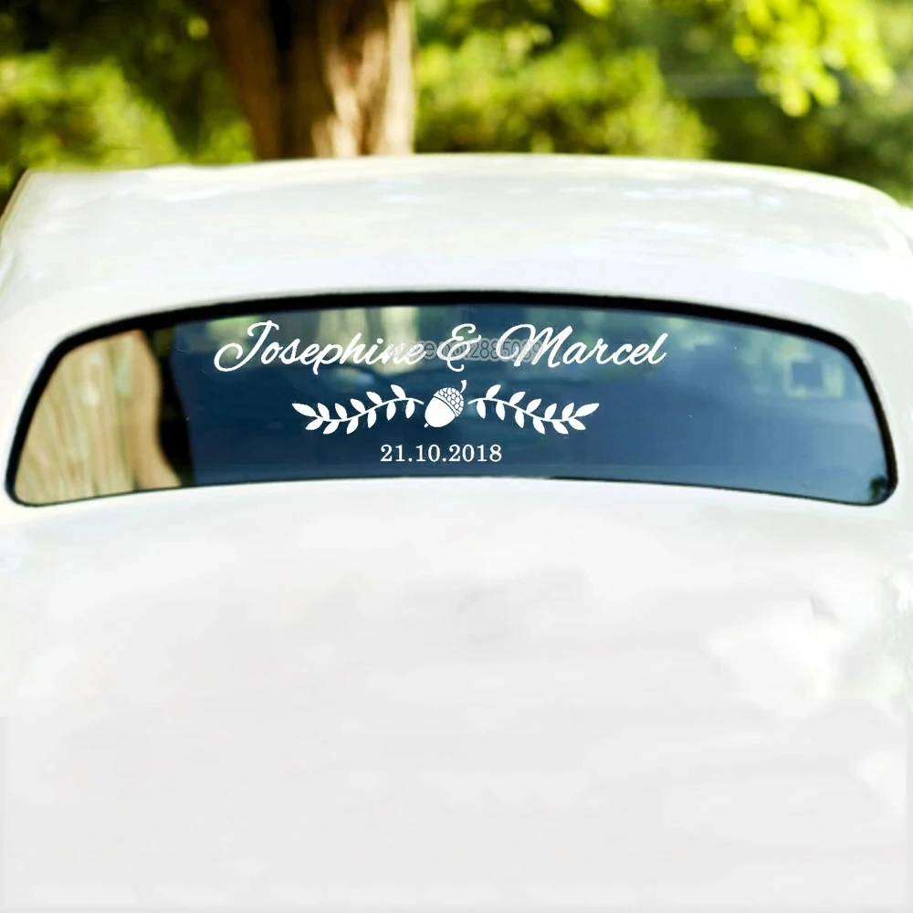 Пользовательское имя, дата, наклейка для автомобиля, водонепроницаемая наклейка для свадьбы, наклейка для автомобиля, белая виниловая наклейка, знак T210918