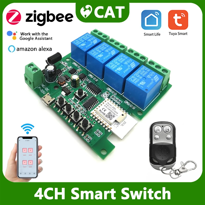 4-канальный выключатель света с дистанционным управлением Zigbee RF433, 4-канальный модуль радиоресивера с релейным выходом 10 А + передатчик для открывания Гаражных дверей, Лидер продаж