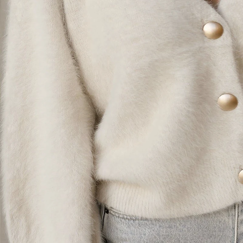 Женский мохеровый свитер, элегантный однобортный короткий кардиган с длинным рукавом и V-образным вырезом, мягкая эластичная трикотажная верхняя одежда, новинка 2021
