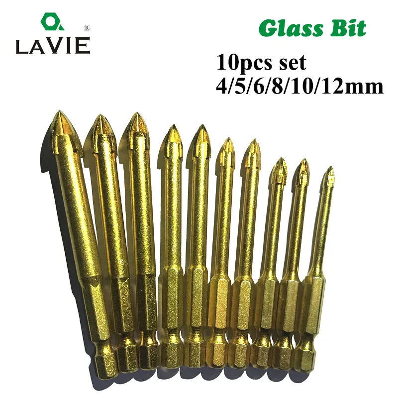 LA VIE 10 шт. стеклянные сверла с титановым покрытием 14 "шестигранный хвостовик набор стеклянных сверл 4 5 6 8 10 12 мм керамическое Мраморное крестовое отверстие 001