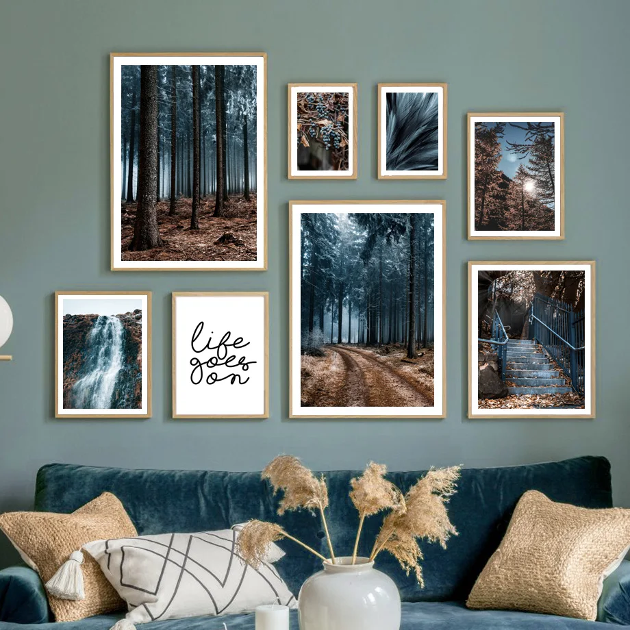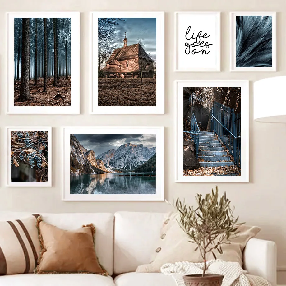 Горы река океан Дерево Трава пейзаж настенная живопись холст сканди...