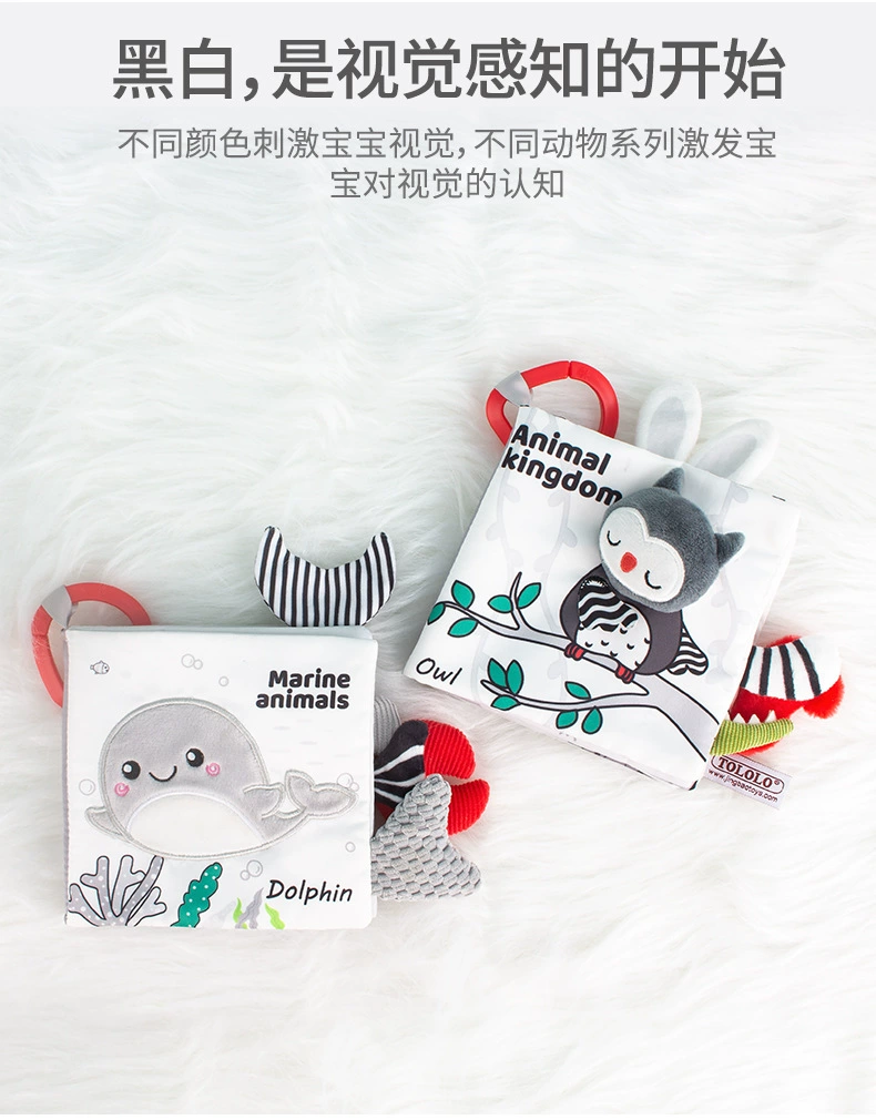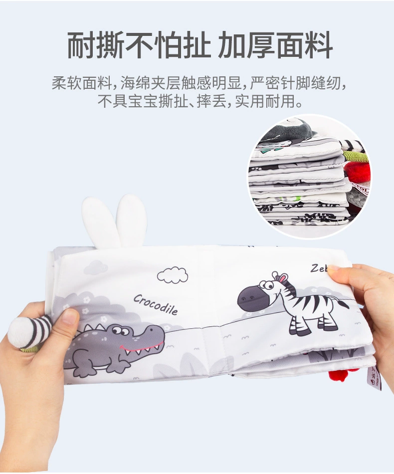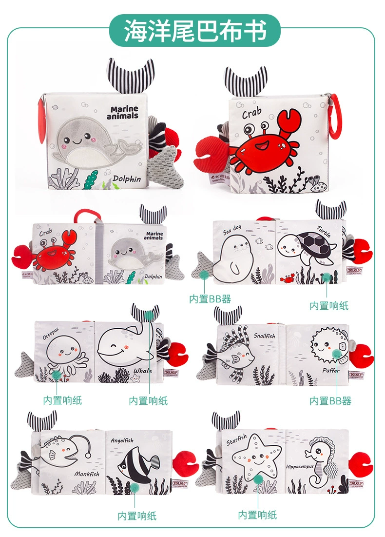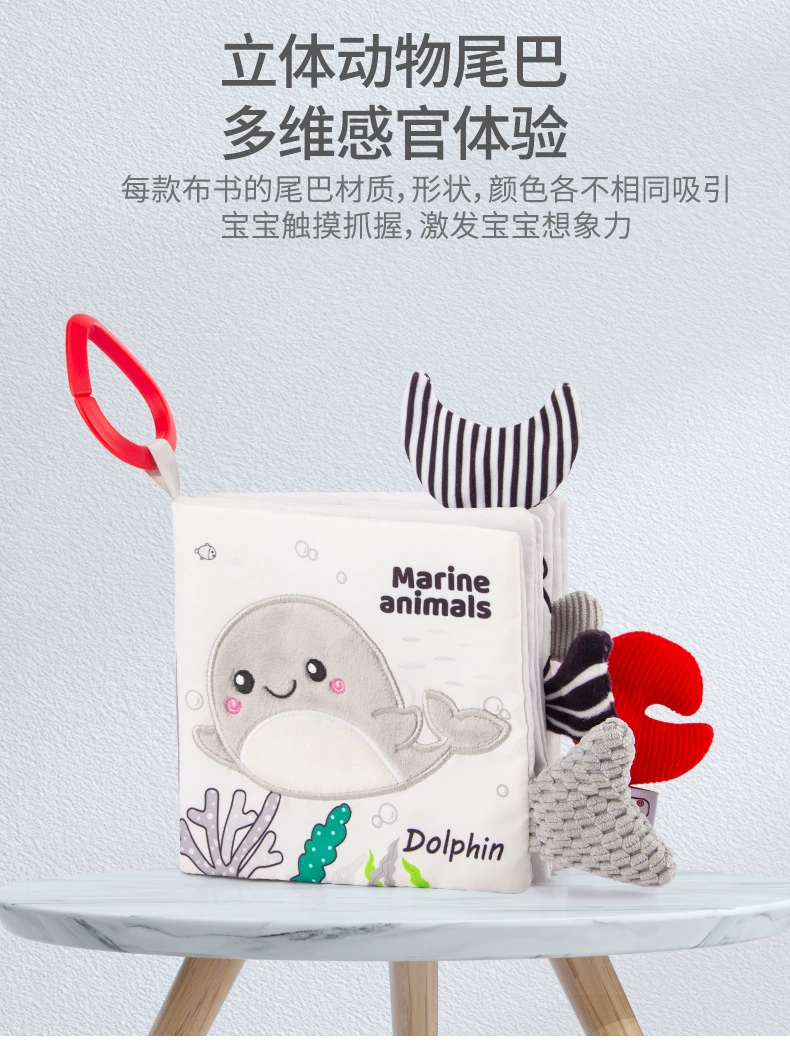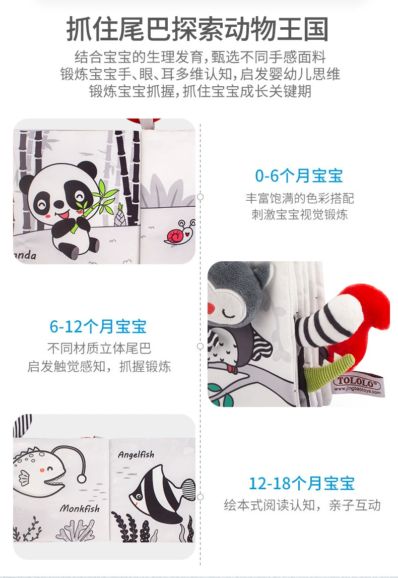 Черно-белые детские игрушки Монтессори, книга из ткани с хвостом, п...