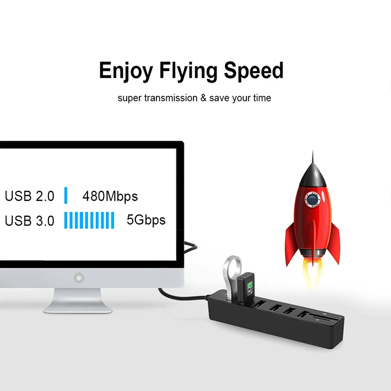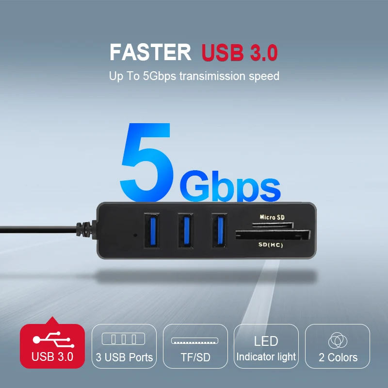 USB-концентратор 3,0, разветвитель с несколькими USB-портами 3,0 с микро-зарядкой для Lenovo, Xiaomi, Macbook Pro, концентратор для ПК, адаптер для TF, SD-точки