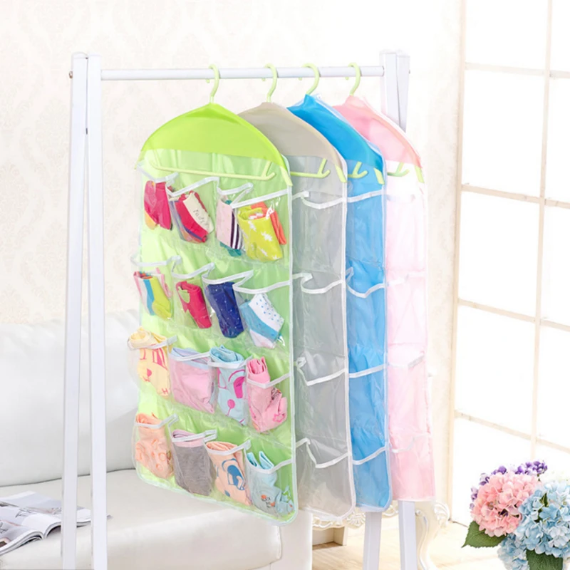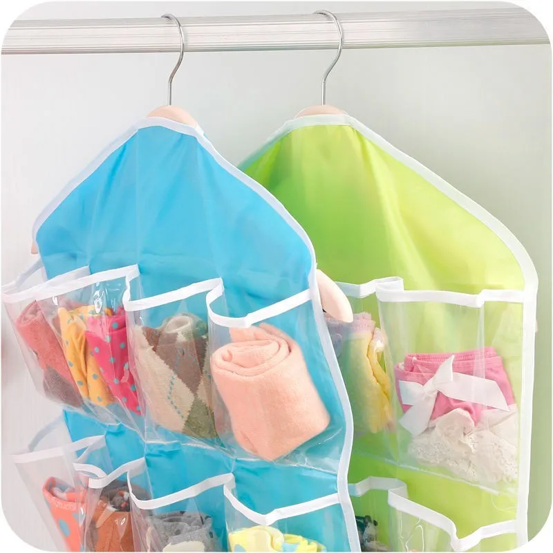 Коробка для хранения, 16 Карманов, прозрачная домашняя вешалка для носков, бюстгальтеров, нижнего белья, органайзер для хранения
