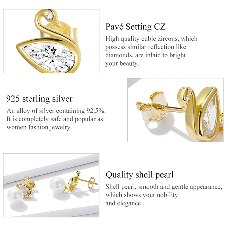 ❤[Описание] Циркон-Лебедь в сочетании с круглым белым жемчугом-ракушкой является элегантным и очаровательным, выпуская уникальное очарование женщин.❤[Спецификация] Размер: 2,3*1 см; Вес: 3,5 г.❤[Материал] Стерлинговое Серебро 925 пробы и паве с фианитами и качественным жемчугом и позолотой, эти серьги не имеют никеля, не имеют свинца, не имеют кадмия, гипоаллергенны. Гарантия качества, приятный для кожи, удобный и удобный в носке, не вредный для вашего здоровья.❤[Для подарка] 1 пара сережек и 1 шт. Изысканная Подарочная коробка, которая является идеальным подарком для мамы, дочки, правки, тети, сестер, друзей.