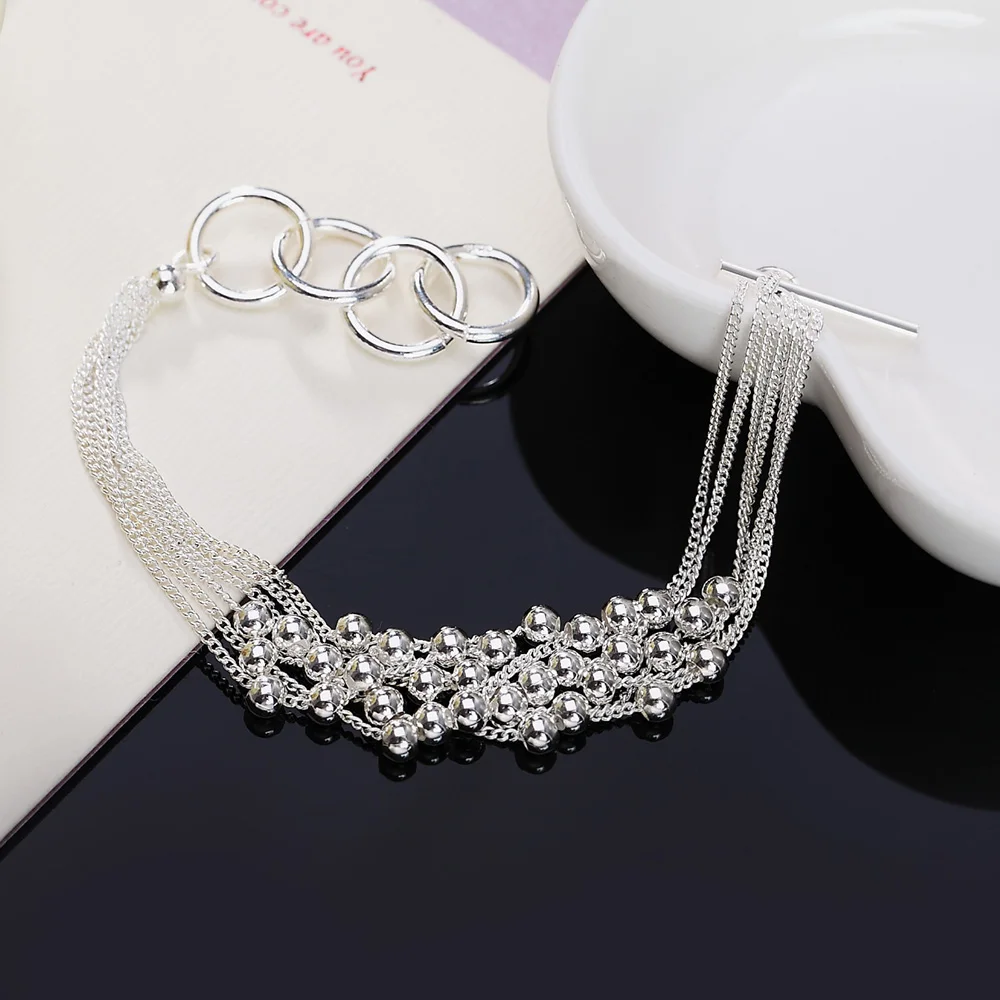 Браслет-цепочка женский из серебра 925 пробы с гладкими бусинами
