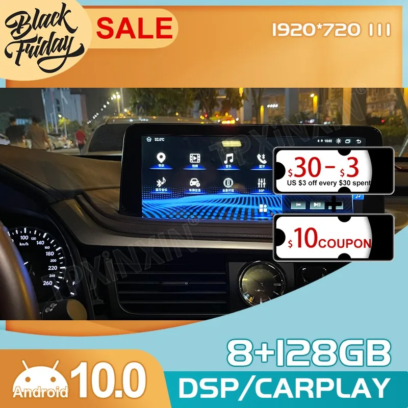 Автомобильный мультимедийный плеер на Android 10,0, 8 ГБ + 128 ГБ, для Lexus RX 2018, 2019, 2021, с GPS-навигацией, Carplay, автомобильное радио, стерео, видео
