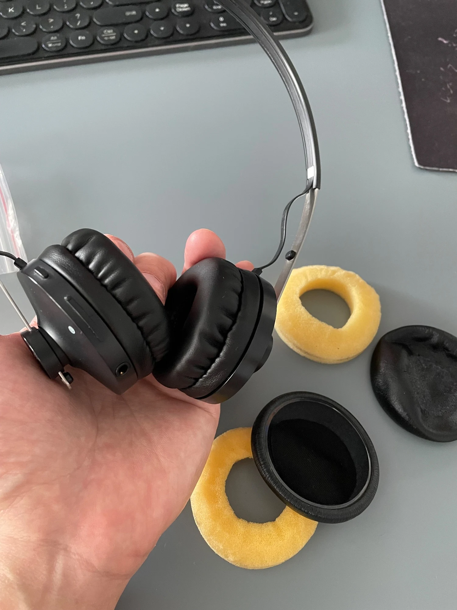 Приехали в Алмату быстрее срока, примерно за 2 недели. По товару могу сказать, что они не прям точно для SBH60, хорошо подходят для замены. Поменять получилось, но нужны прямые руки и логика при замене родных амбушюр. Замена далась мне легко, комфорт в использовании выше родных, как пишут в отзыве, это правда. Наушники выглядят чуть менее элегантно и ретро-стильно, но все еще очень хорошо. До этого покупал другие варианты с алика, этот пока лучший. Рекомендую. В фотках - мои шаги по замене. Самый хитрый момент, это когда пластиковая рамка уже находится в новых амбушюрах и ее нужно надеть на наушник. Нужно натянуть подушку равномерно (фото 3), чтобы пазы по периметру без проблем встрегнулись в наушник.