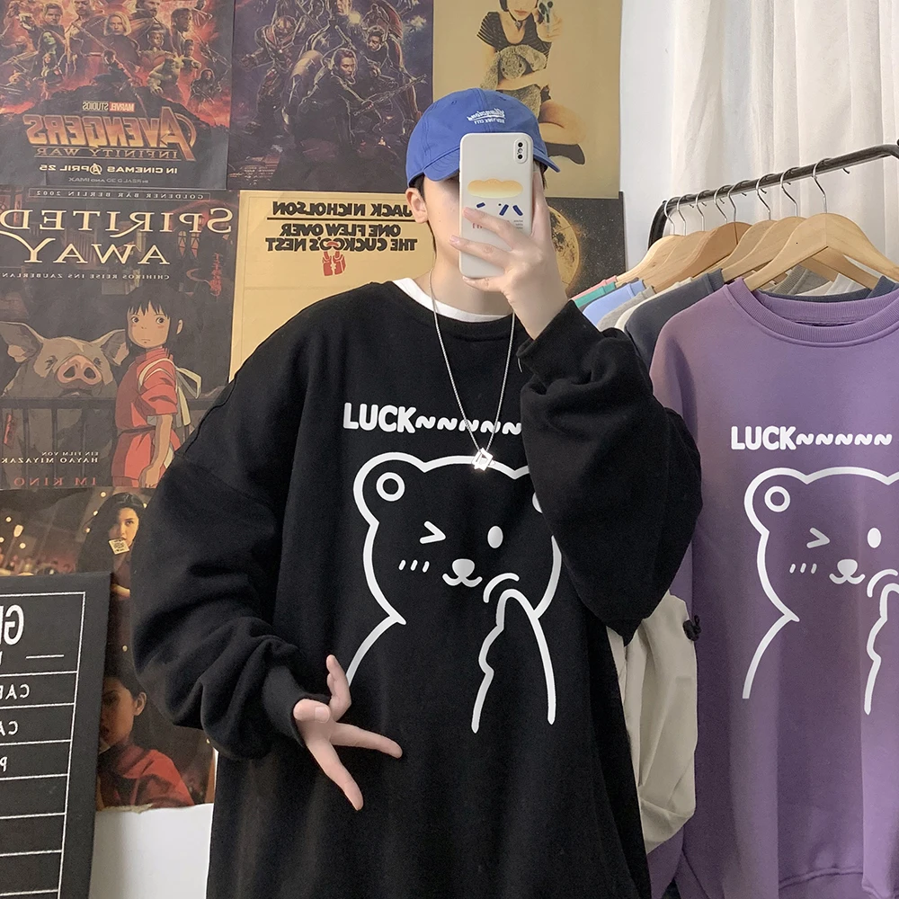 Privathinker Harajuku мужские свитшоты с мультяшным принтом, модный бренд, уличная одежда, свободные мужские пуловеры, корейский стиль, унисекс, толстовка