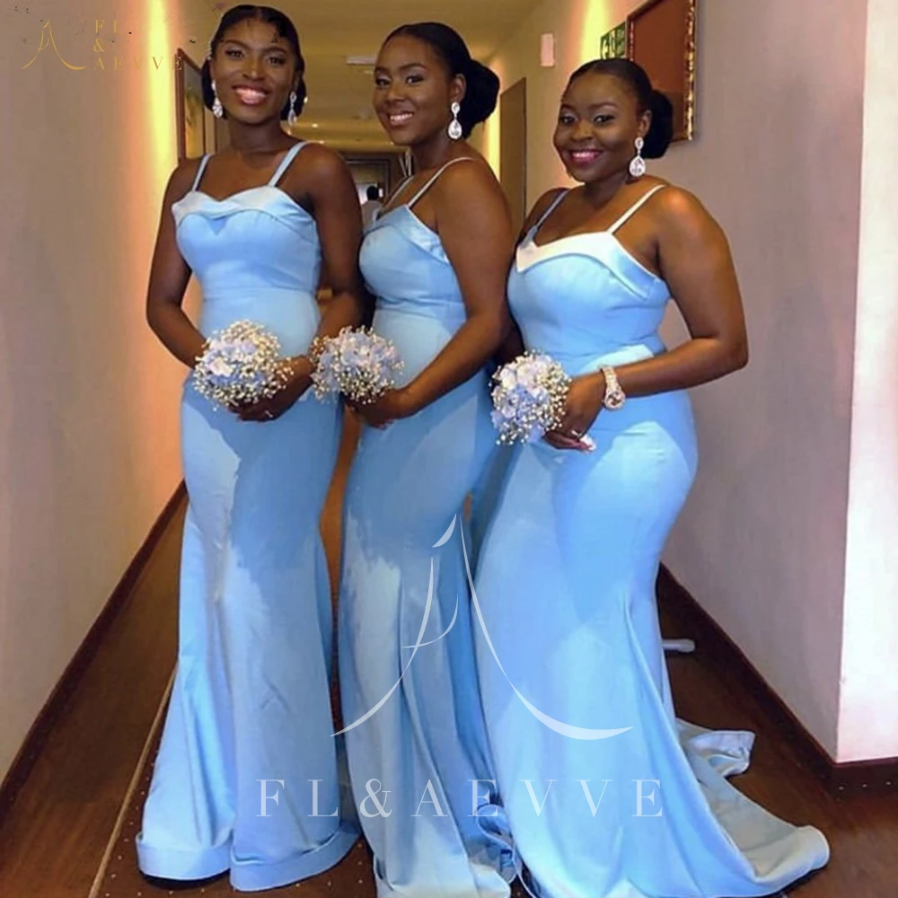 Модный небесно-голубой Атлас Русалка платья подружек невесты Новое платье на бретельках для свадебной вечеринки милое выпускное платье с коротким шлейфом
