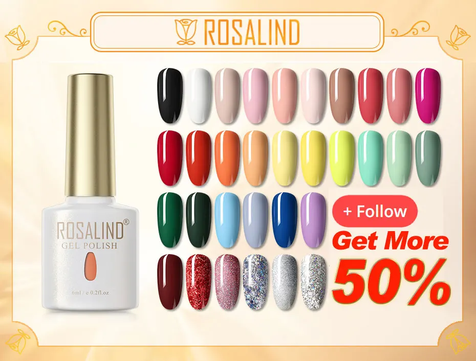 ROSALIND Гель-лак для ногтей 50 цветов Полупостоянный маникюр Дизайн ногтей Гель-Лаки гибридная основа верхнее покрытие для гель-лака