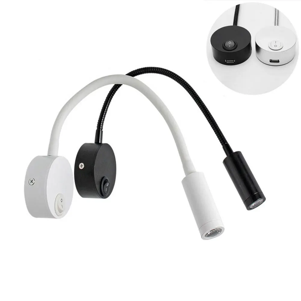 Светодиодная настенная лампа в виде шланга, гибкий прикроватный светильник для чтения для дома, гостиницы, настенный светильник для рисования, освещение для книги с интерфейсом USB и выключателем, 3 Вт