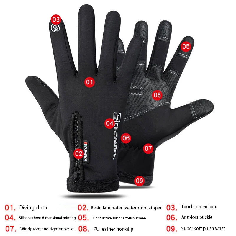 Функция: нескользящий, теплый, сенсорный экран, водонепроницаемый