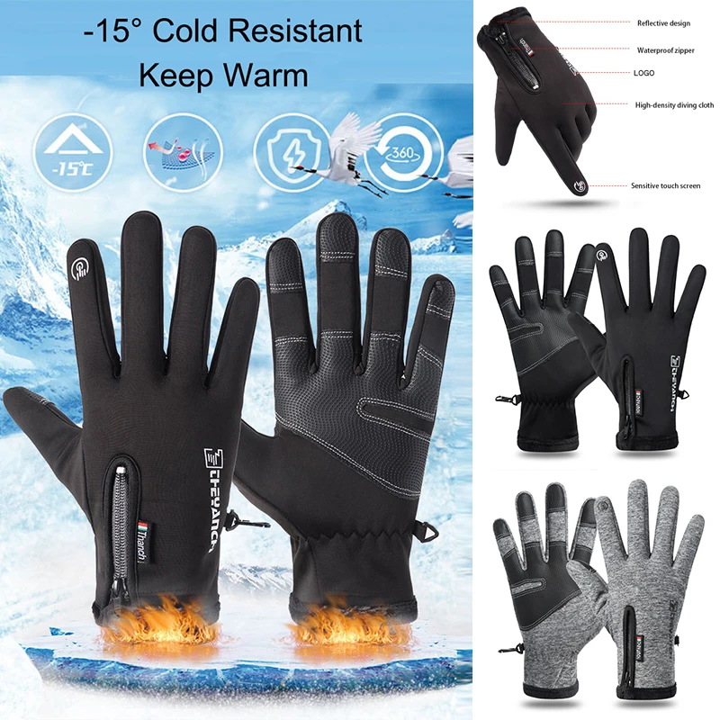 Осенне-зимние мужские и женские перчатки, водонепроницаемые ветрозащитные перчатки, теплые флисовые перчатки для бега