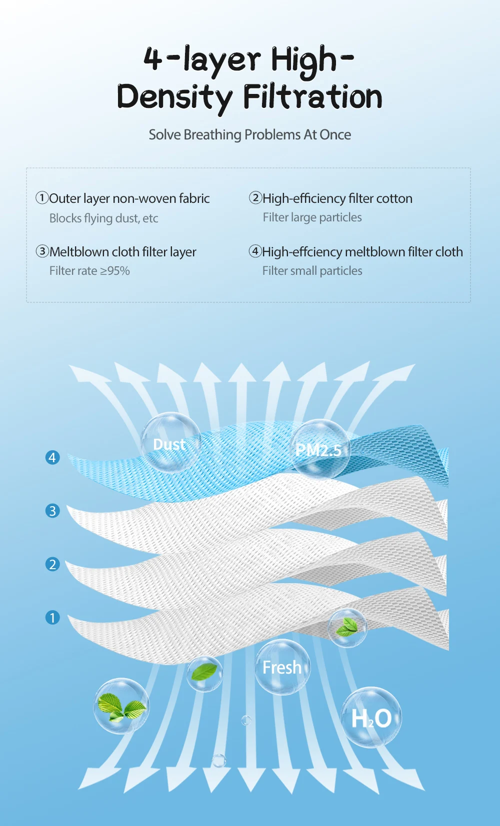 * Сохраняет тепло и водонепроницаемость* Мягкая текстура и удобная одежда* Маски для защиты от зародышей* Маска для лица модная* Фильтрация PM 2,5 с коэффициентом эффективности до 95%