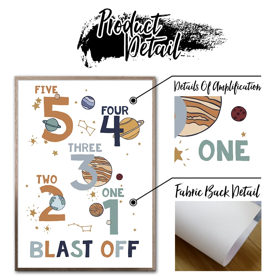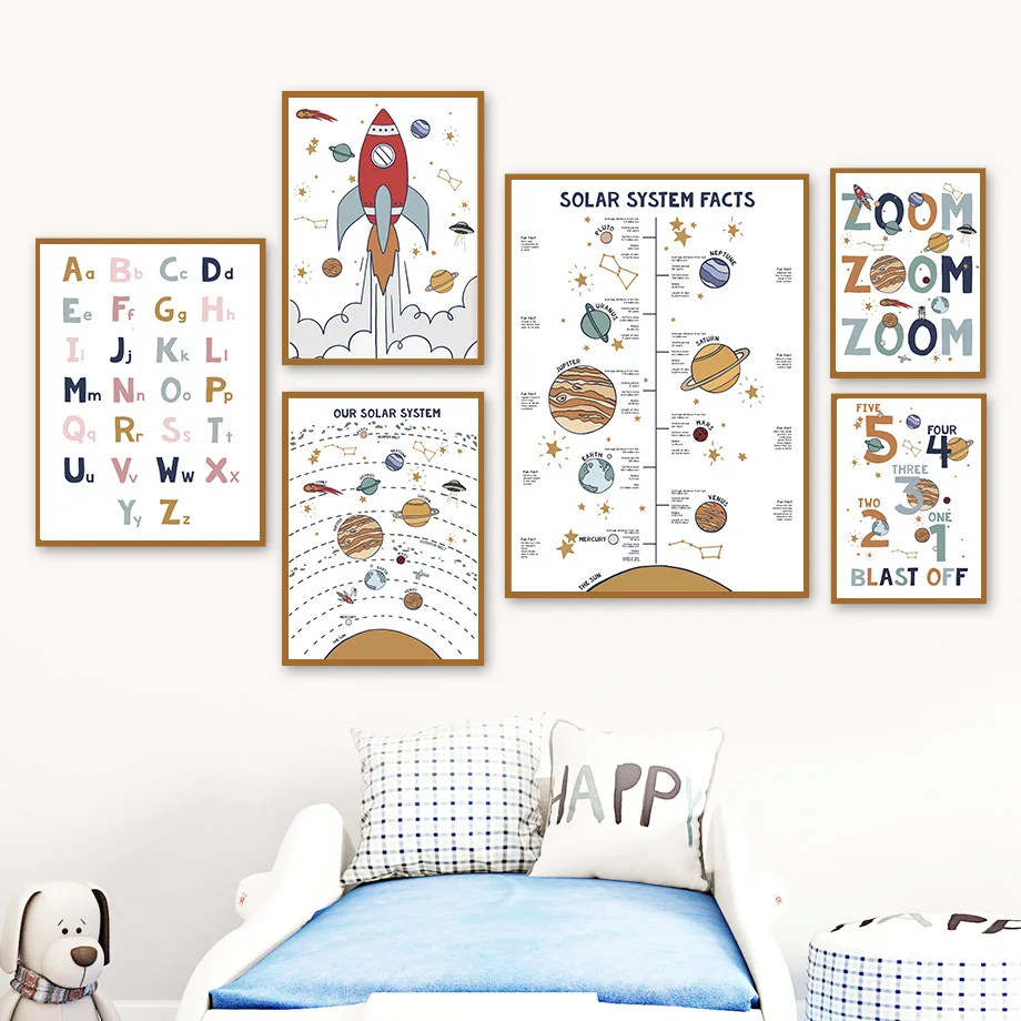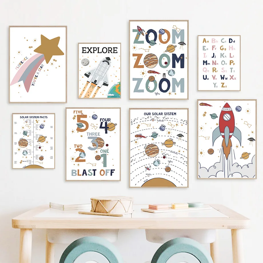 Планет космическая ракета цифры буквы детская стена искусство холст...