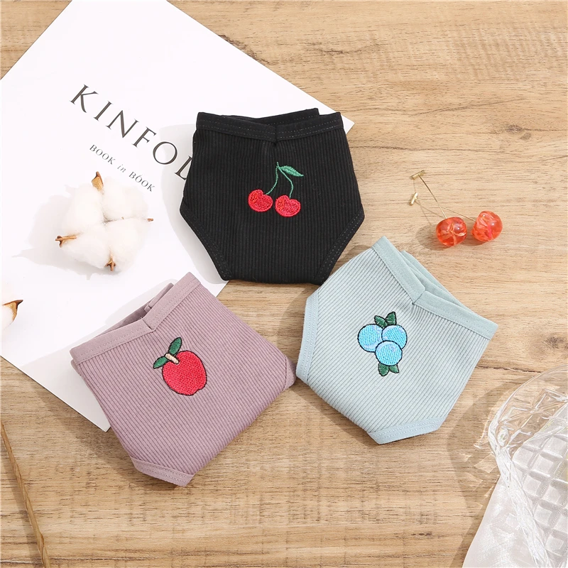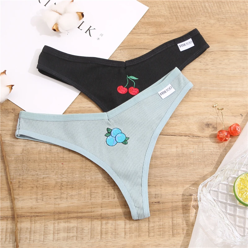 3 шт.4 шт., женские хлопковые трусики-стринги с вышивкой фруктов