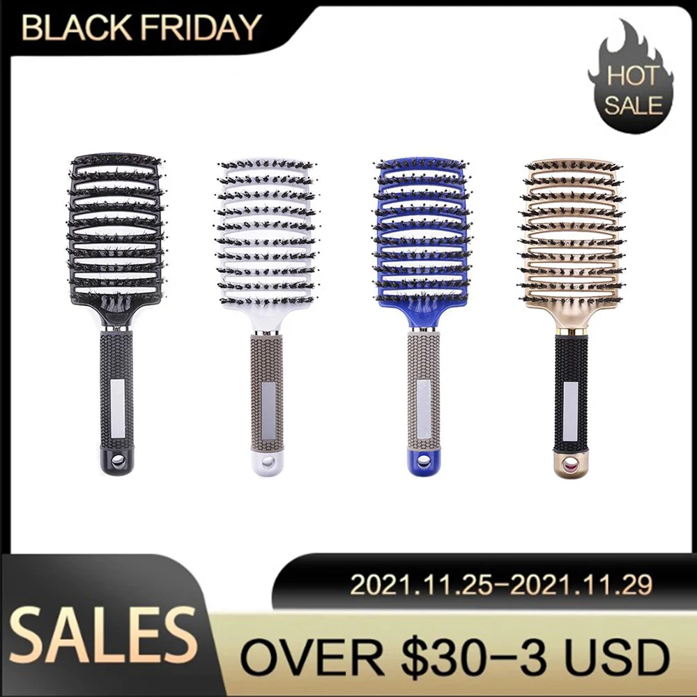 Женская расческа для массажа кожи головы, щетка для волос с щетиной, щетка для влажной, сухой и вьющейся щетки, инструмент для укладки