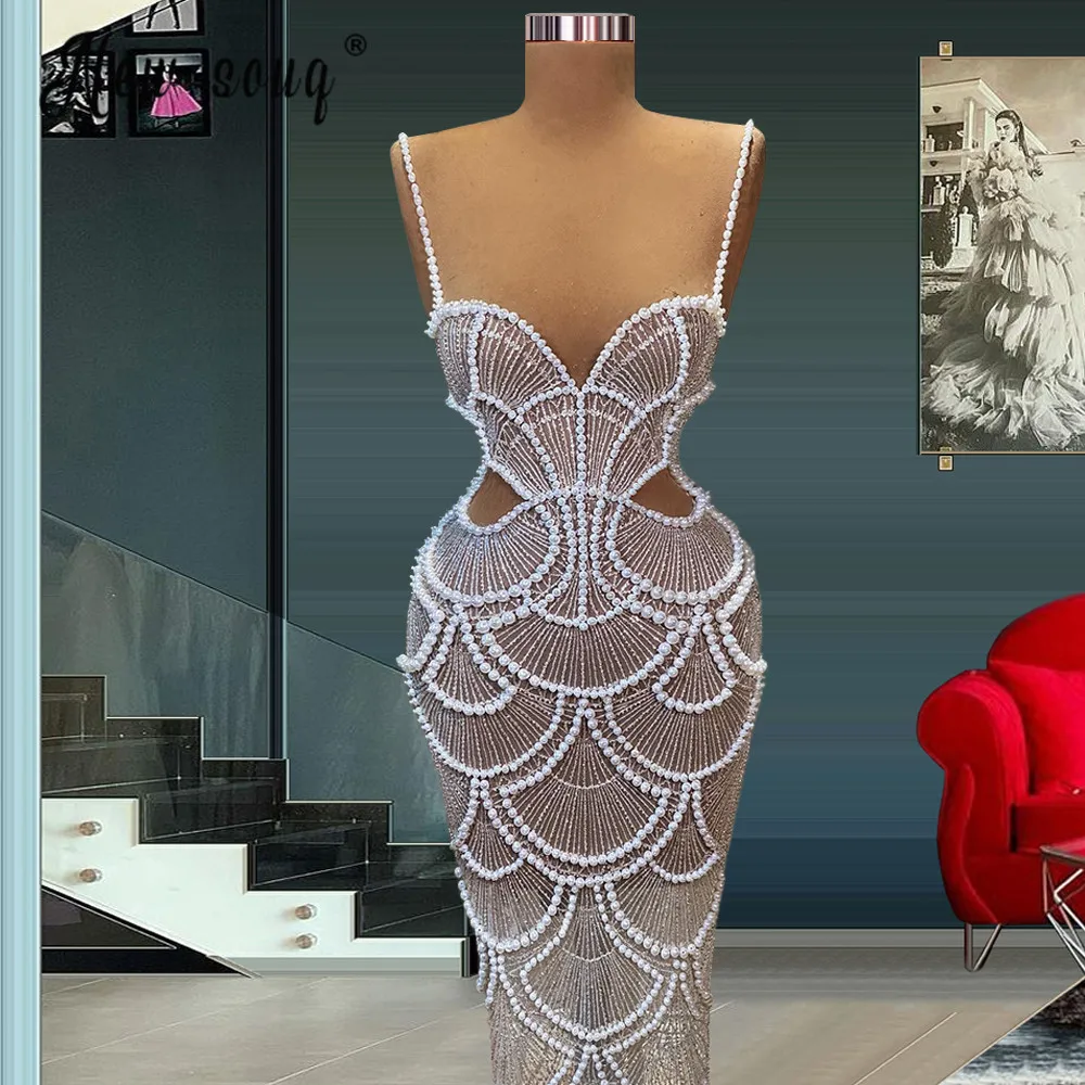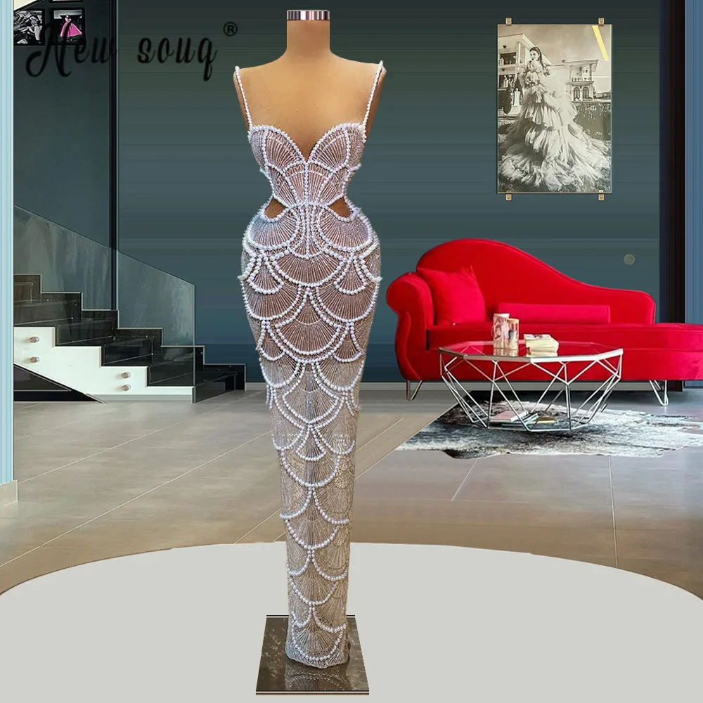Элегантные вечерние платья с жемчугом и бусинами для выпускного вечера, сексуальные платья на тонких бретельках, белые платья знаменитостей Русалочки, вечерние платья, ночные халаты