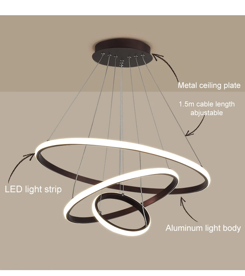 Люстра потолочная светодиодная, 5 колец, для гостиной, столовой, ку...
