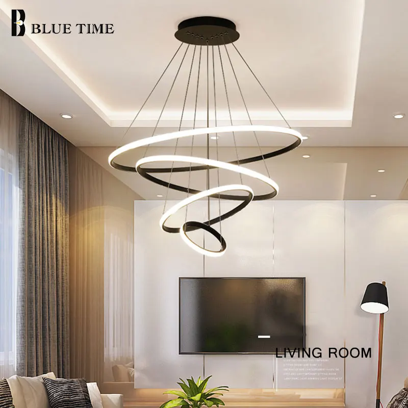 Черно-белый современный светодиодный кольцевой подвесной светильник для гостиной, столовой, спальни, домашний декор, подвесной светильник, люстра, светильники