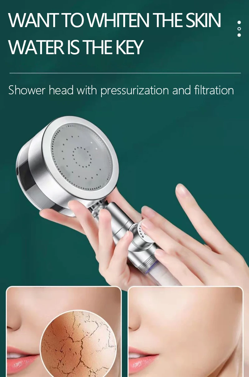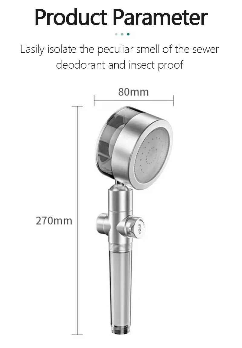 【Дизайн высокого давления 】насадка для душа обеспечивает поток воды создает поток под давлением через вращающееся колесо, увеличивая скорость потока воды, тем самым увеличивая давление воды. Применяется для низкого давления воды.