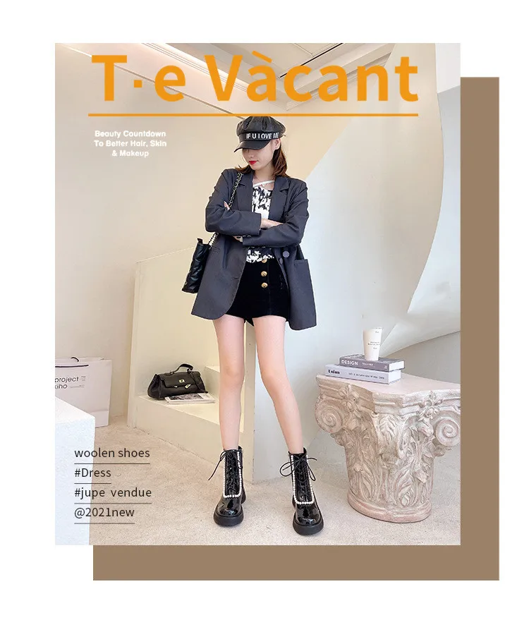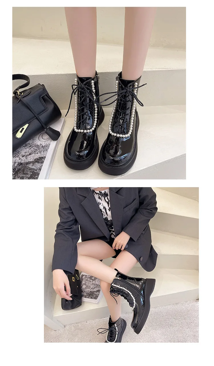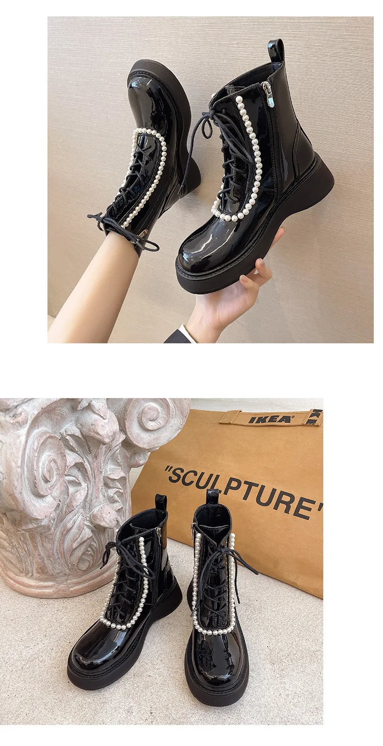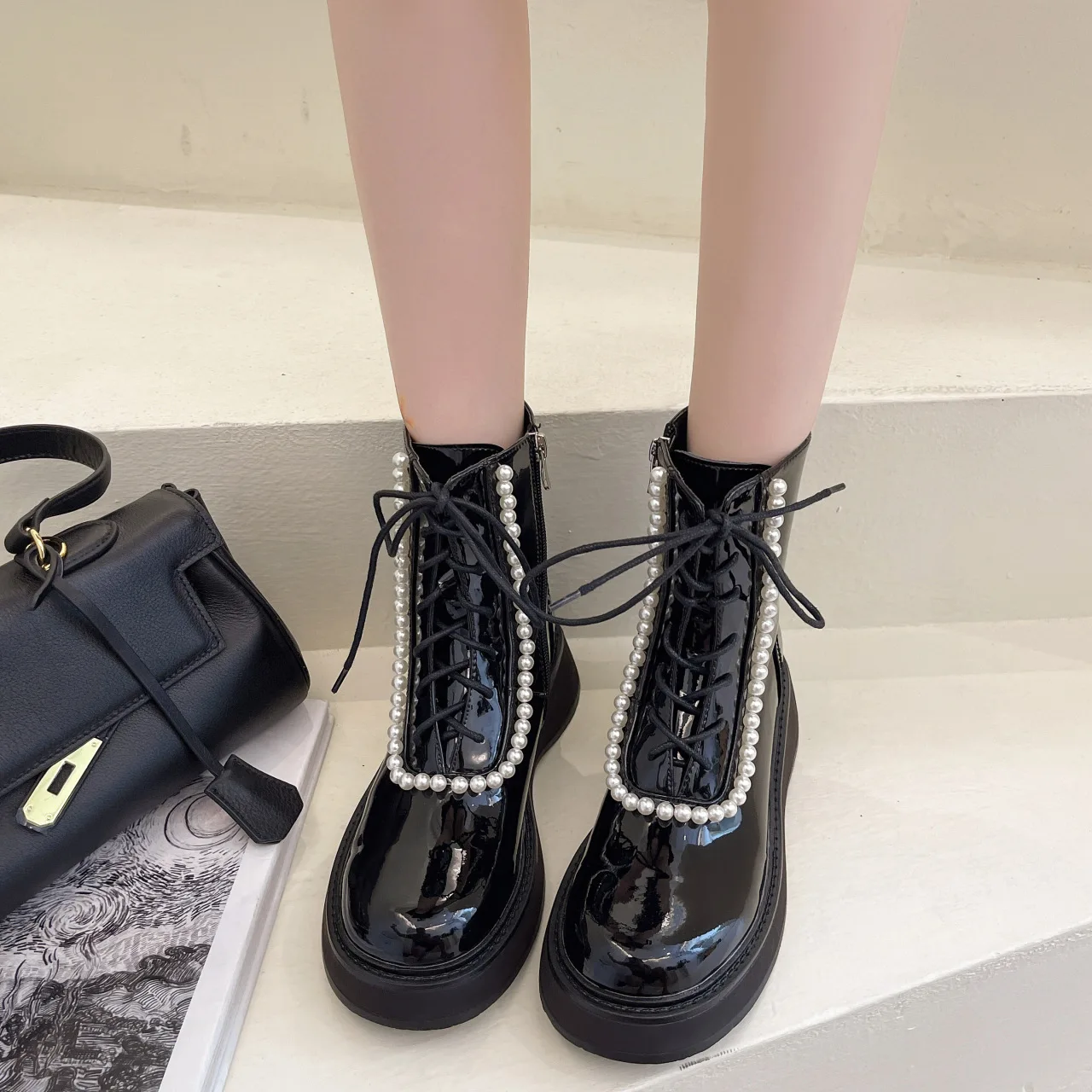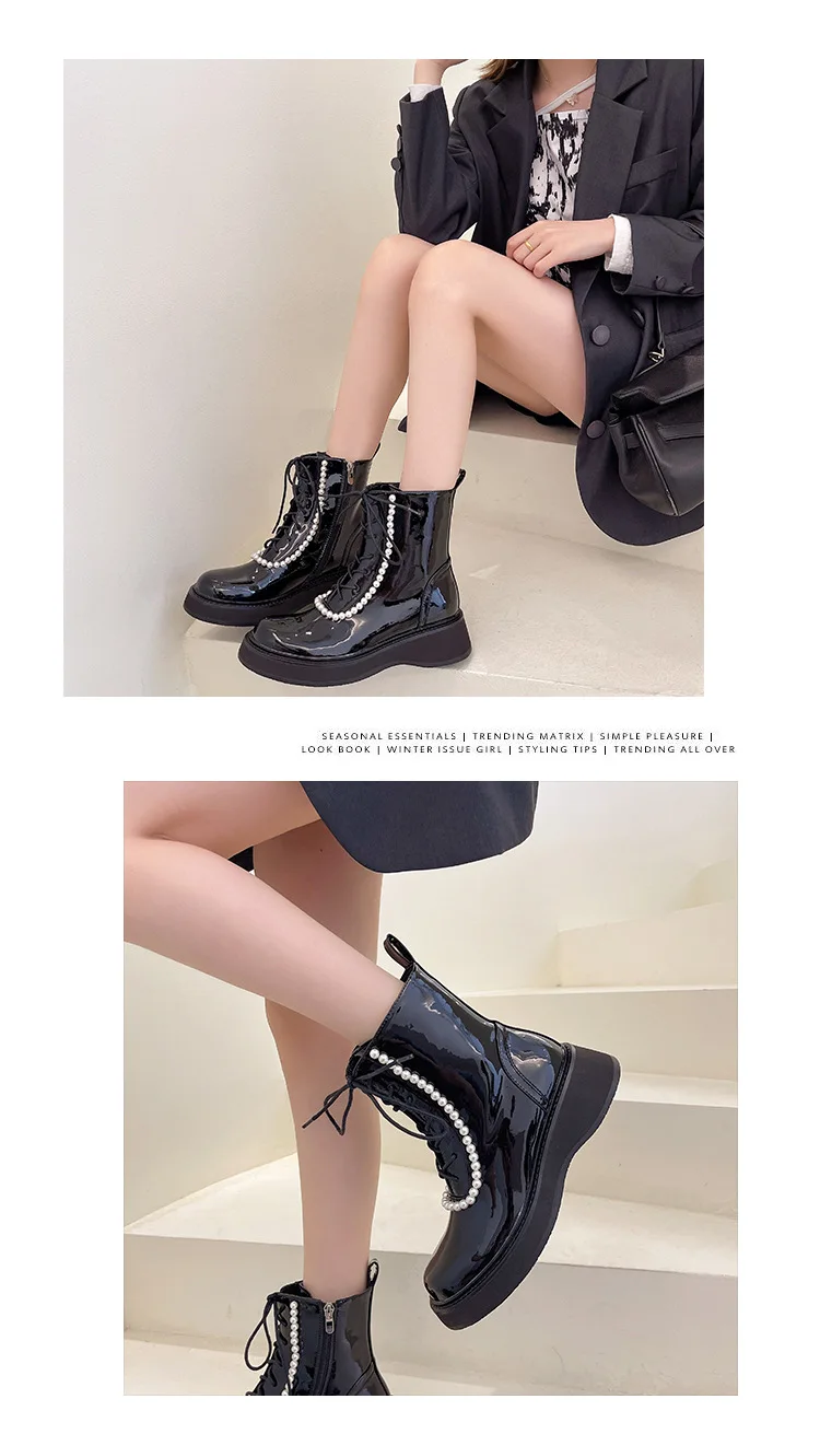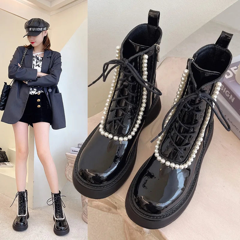 Женские полуботинки Martin с жемчугом, зимние короткие ботинки на толстой подошве, мотоциклетные ботинки, увеличенная женская обувь, женские ботинки 2021